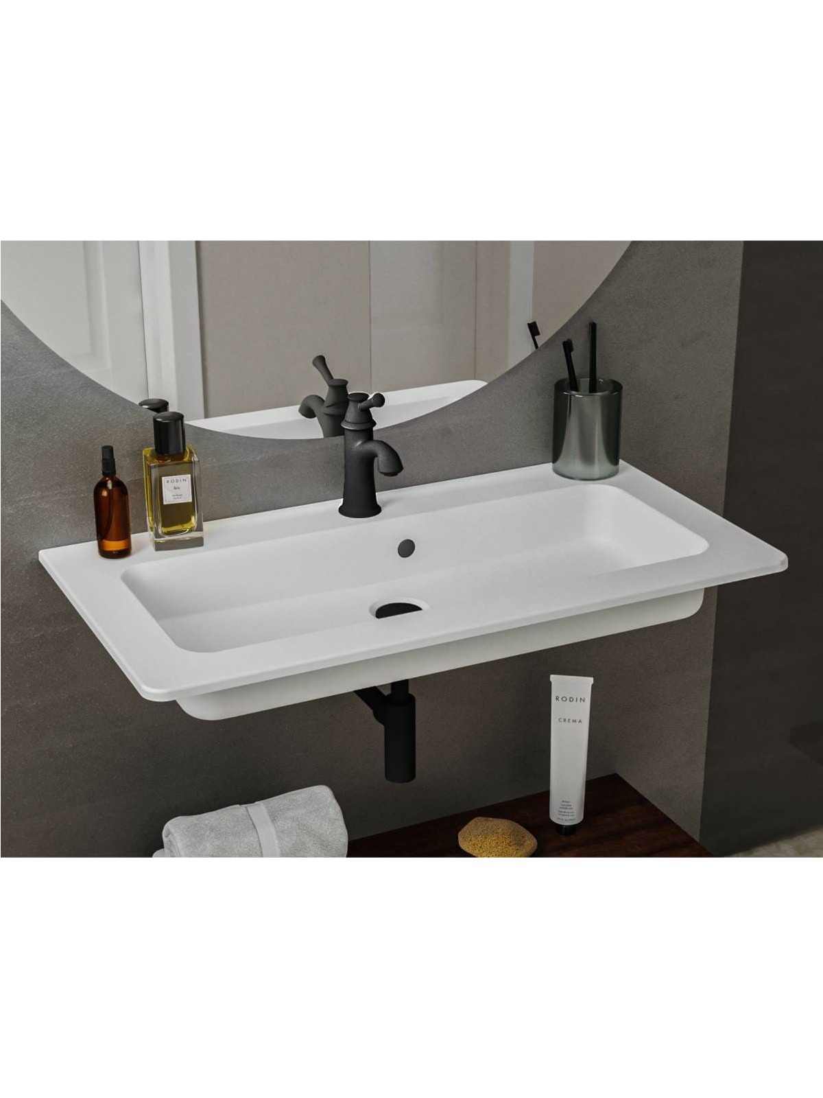 Прямокутний за формою чаші раковина має тип монтажу - підвісний, врахуйте це перед замовленням меблів у ванну кімнату.