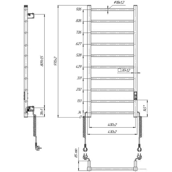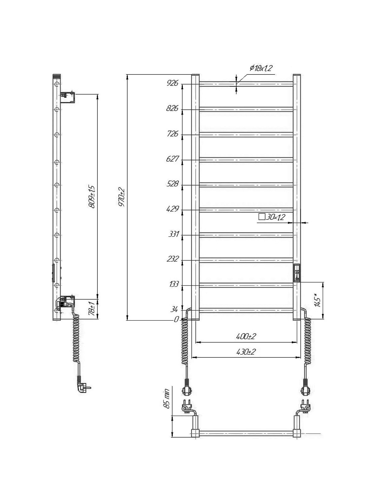 6.1.0803.06.BM Рушникосушка ел. HF Leeds 970x430 чорний мат, в комплекті з прих.підкл (1 сорт)