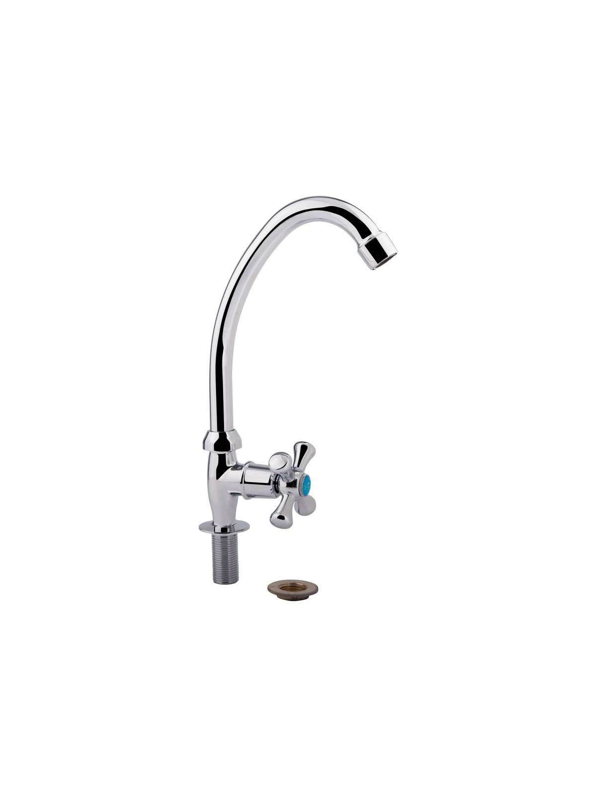 Кран на одну воду для кухні Lidz (CRM) 75 21 269F виготовлений з цинку. Завдяки глянсовому хромованому покриттю має оригінальний зовнішній вигляд. Виконаний в класичному стилі, зі зручною ручкою для регулювання напору холодної води.