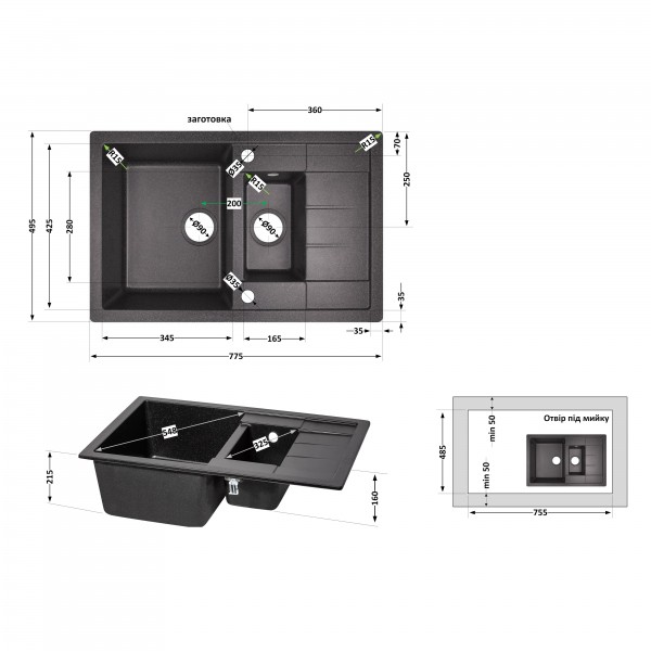 Тип виробу: Кухонна мийка