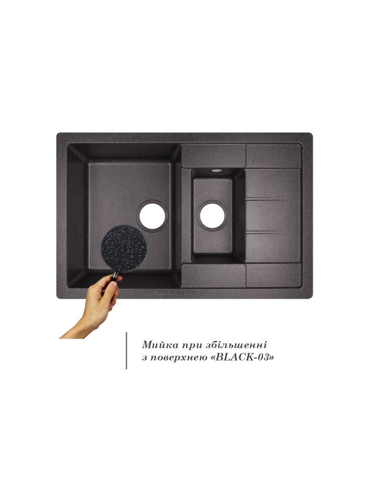 Подвійна кухонна мийка Lidz (BLA-03) namp;#8212; ідеальне рішення для тих, хто цінує зручність і функціональність на кухні. Простора робоча зона з двома чашами дозволяє одночасно виконувати кілька завдань, заощаджуючи ваш час. Мийка виготовлена з міцного штучного каменю, стійкого до подряпин, ударів і високих температур. Універсальне крило додає практичності, а лаконічний дизайн легко доповнить будь-який інтер'єр.