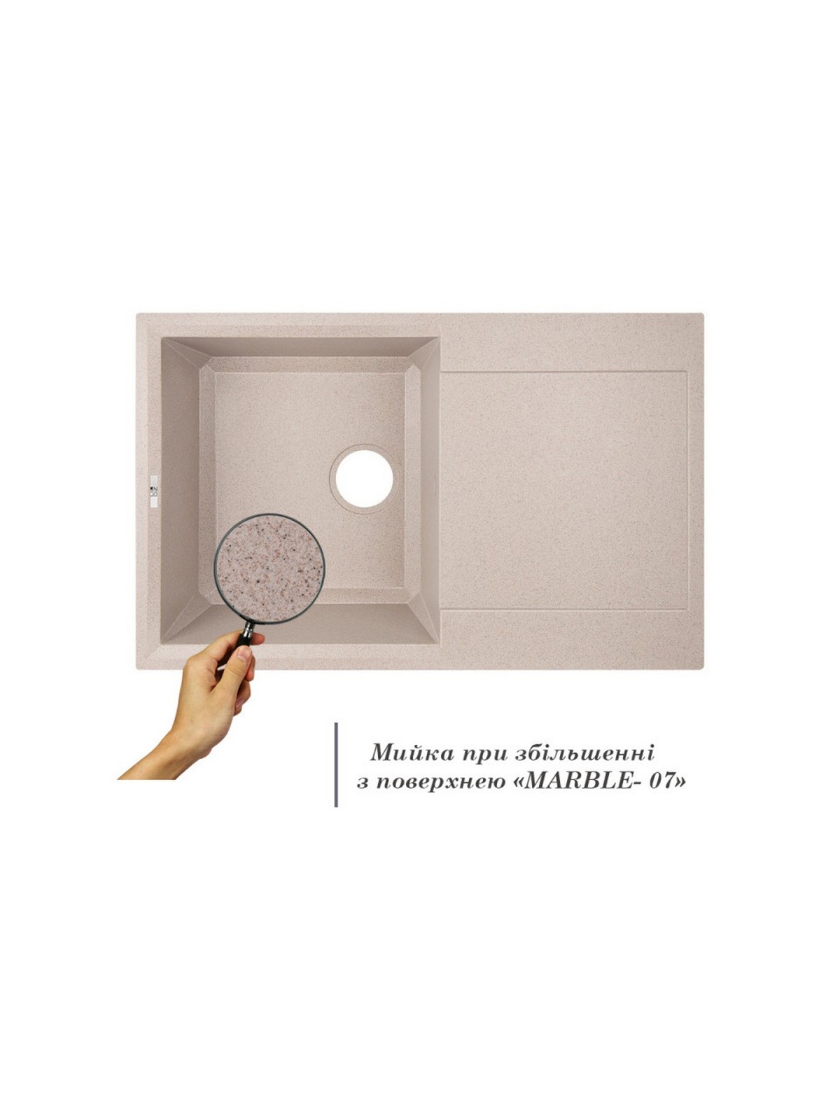 Кухонна мийка Lidz (MAR-07) з просторим крилом namp;#8212; це практичне рішення для зручної організації робочої зони на кухні. Врізна мийка зі штучного каменю відзначається високою міцністю, стійкістю до подряпин і температурних впливів. Велике крило ідеально підходить для сушіння посуду та підготовки продуктів. Сучасна прямокутна форма та універсальний дизайн легко впишуться в будь-який інтер'єр.