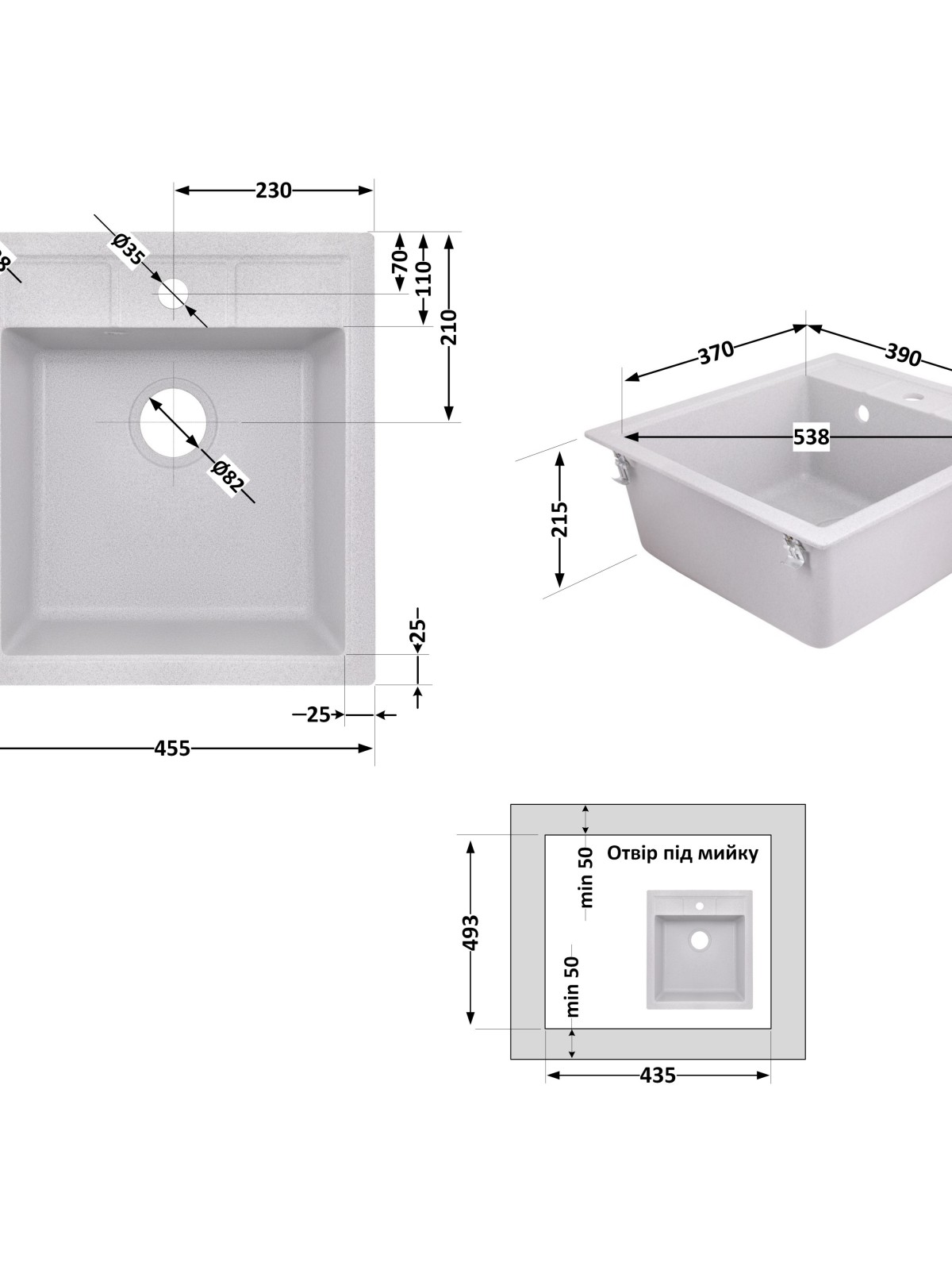Комплектація: Мийка, сифон, злив/перелив, корзинчастий вентиль, кріплення.