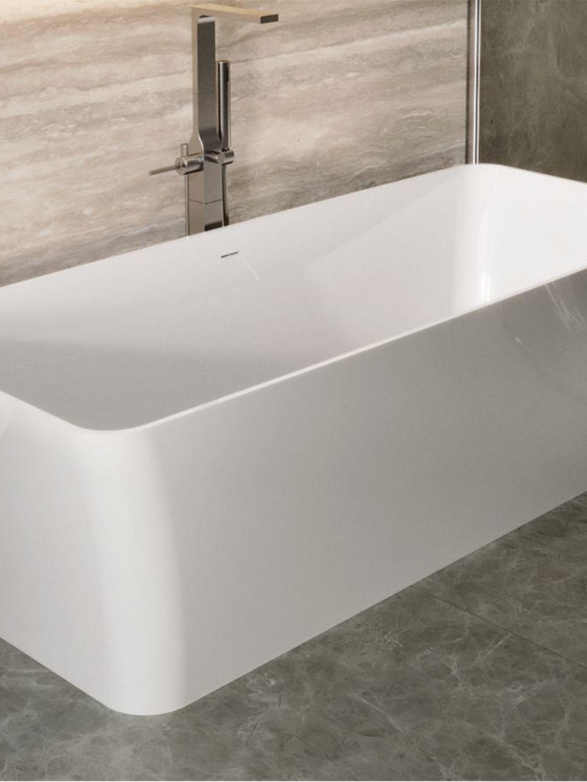 - Довговічність матеріалу. Ванни з литого мармуру є ремонтопридатними, стійкими до барвників і сонячних променів.
