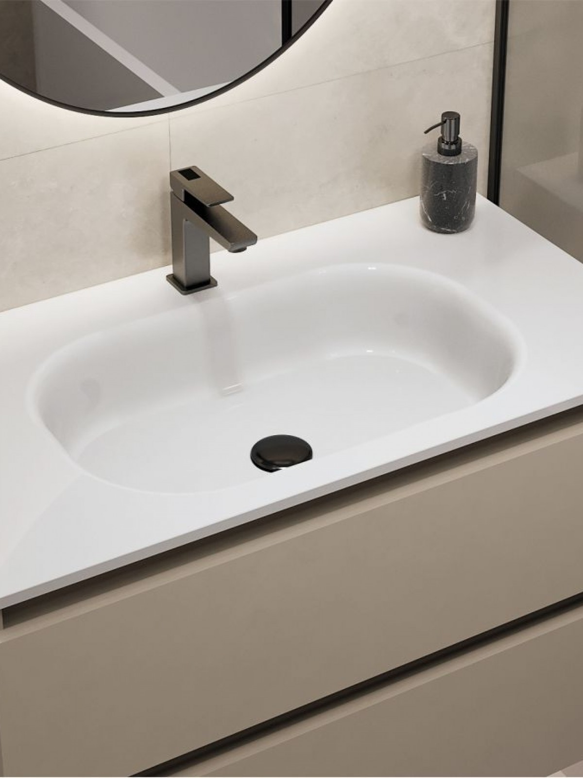 Глянец раковина зі штучного каменю гармонійно доповнить дизайн сучасної ванної кімнати. Матеріал умивальника - Miramarble.