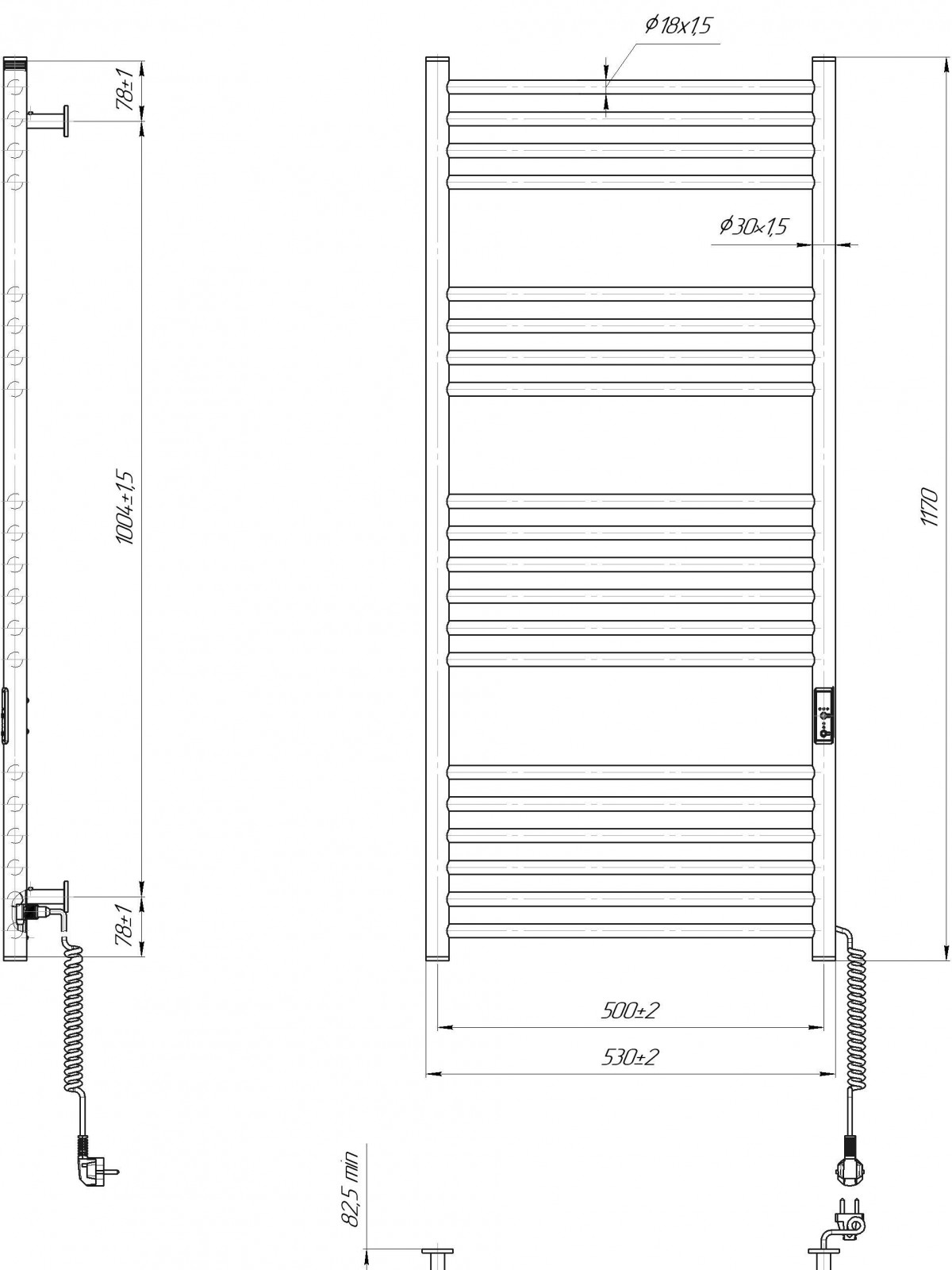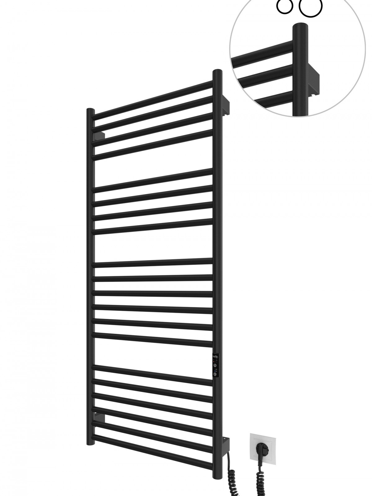 Працює за технологією сухого ТЕНу. Обладнана вбудованим таймер-регулятором і конектором для підключення до живлення з будь-якого боку. Оснащена комплектом для прихованого підключення.