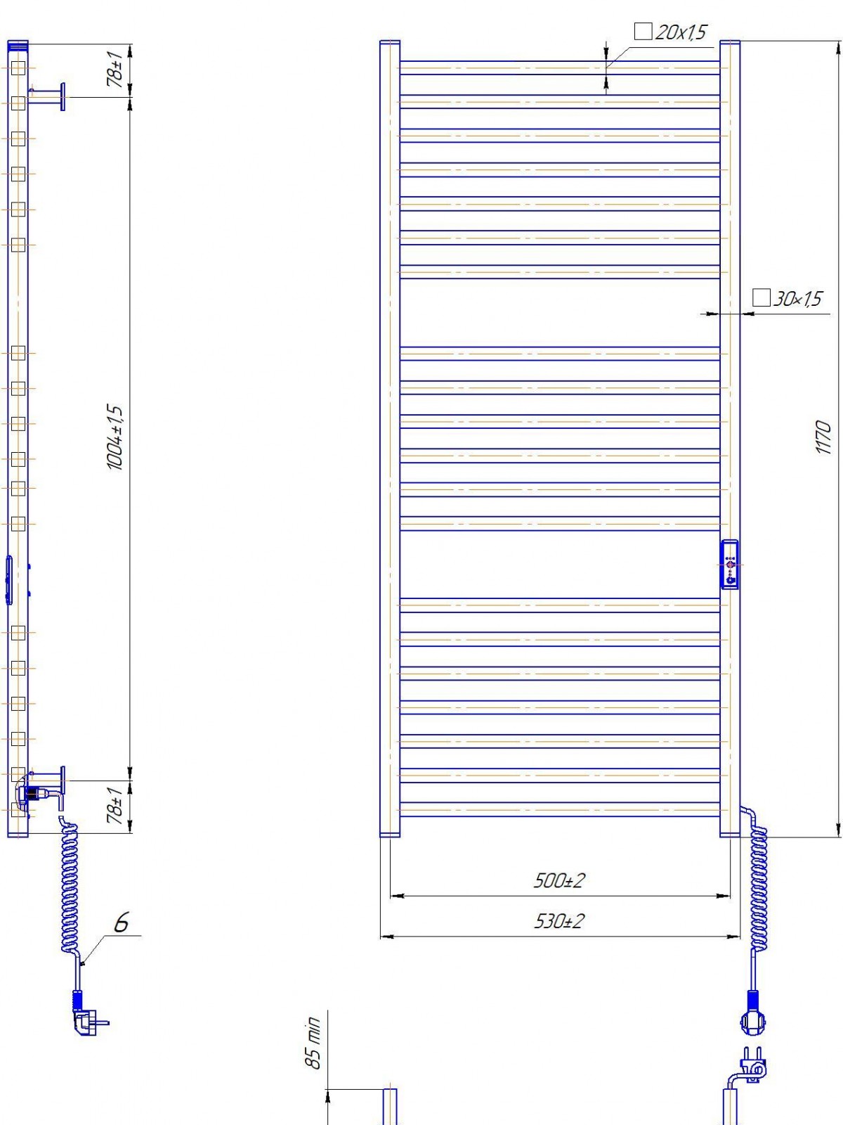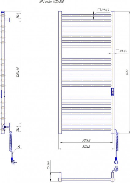 Електрична рушникосушарка HF London 1170х530.
