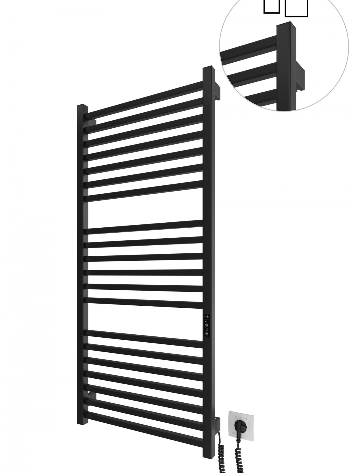 Працює за технологією сухого ТЕНу. Обладнана вбудованим таймер-регулятором і конектором для підключення до живлення з будь-якого боку. Оснащена комплектом для прихованого підключення.