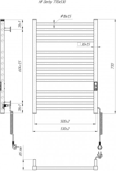 Електрична рушникосушарка HF Derby 770x530.
