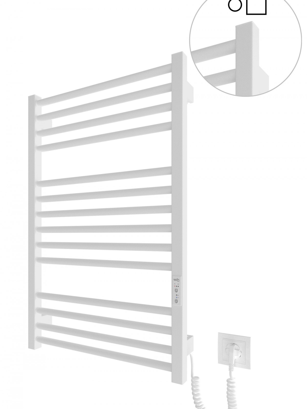 Працює за технологією сухого ТЕНу. Обладнана вбудованим таймер-регулятором і конектором для підключення до живлення з будь-якого боку. Оснащена комплектом для прихованого підключення.