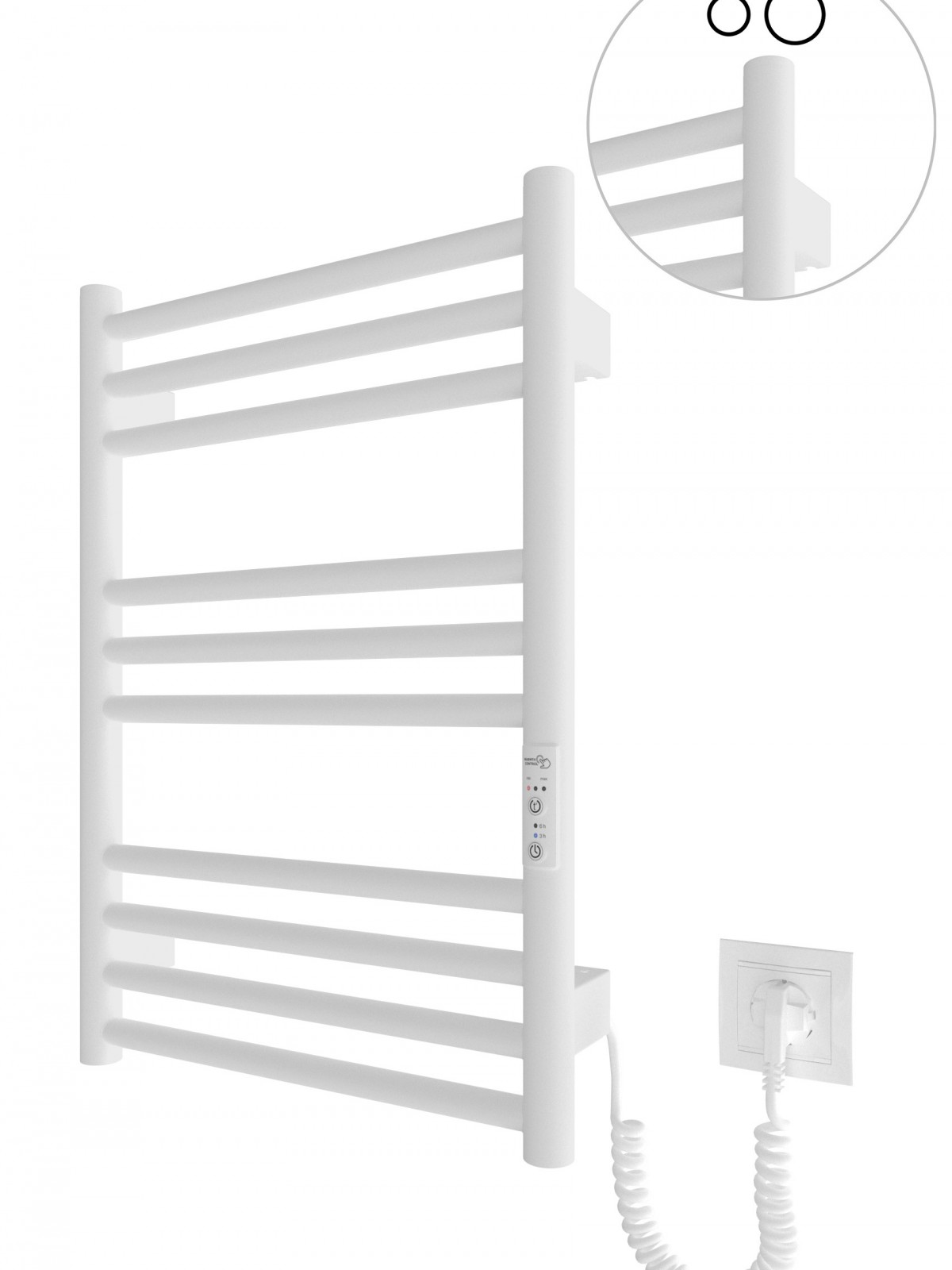 Працює за технологією сухого ТЕНу. Обладнана вбудованим таймер-регулятором і конектором для підключення до живлення з будь-якого боку. Оснащена комплектом для прихованого підключення.