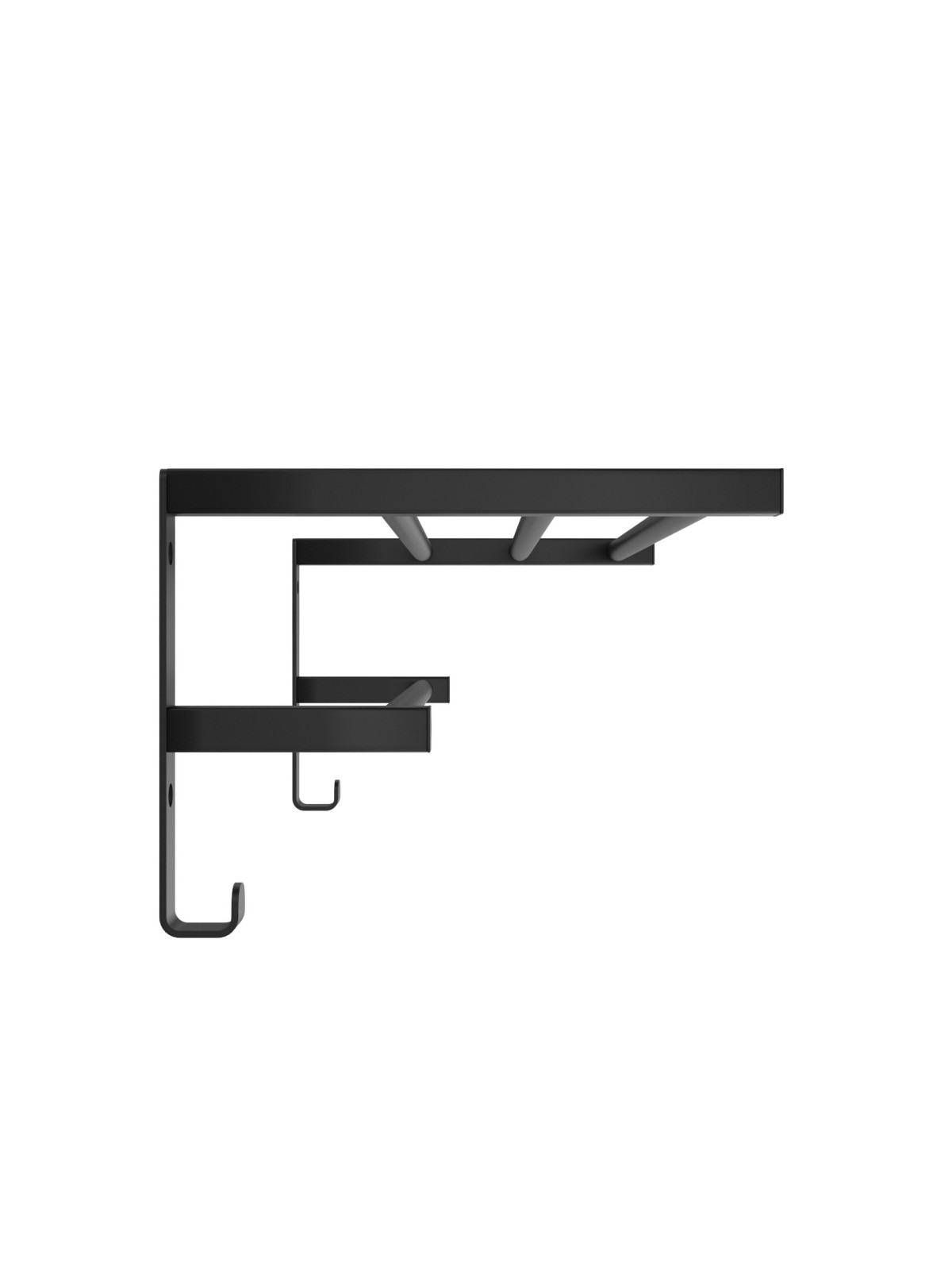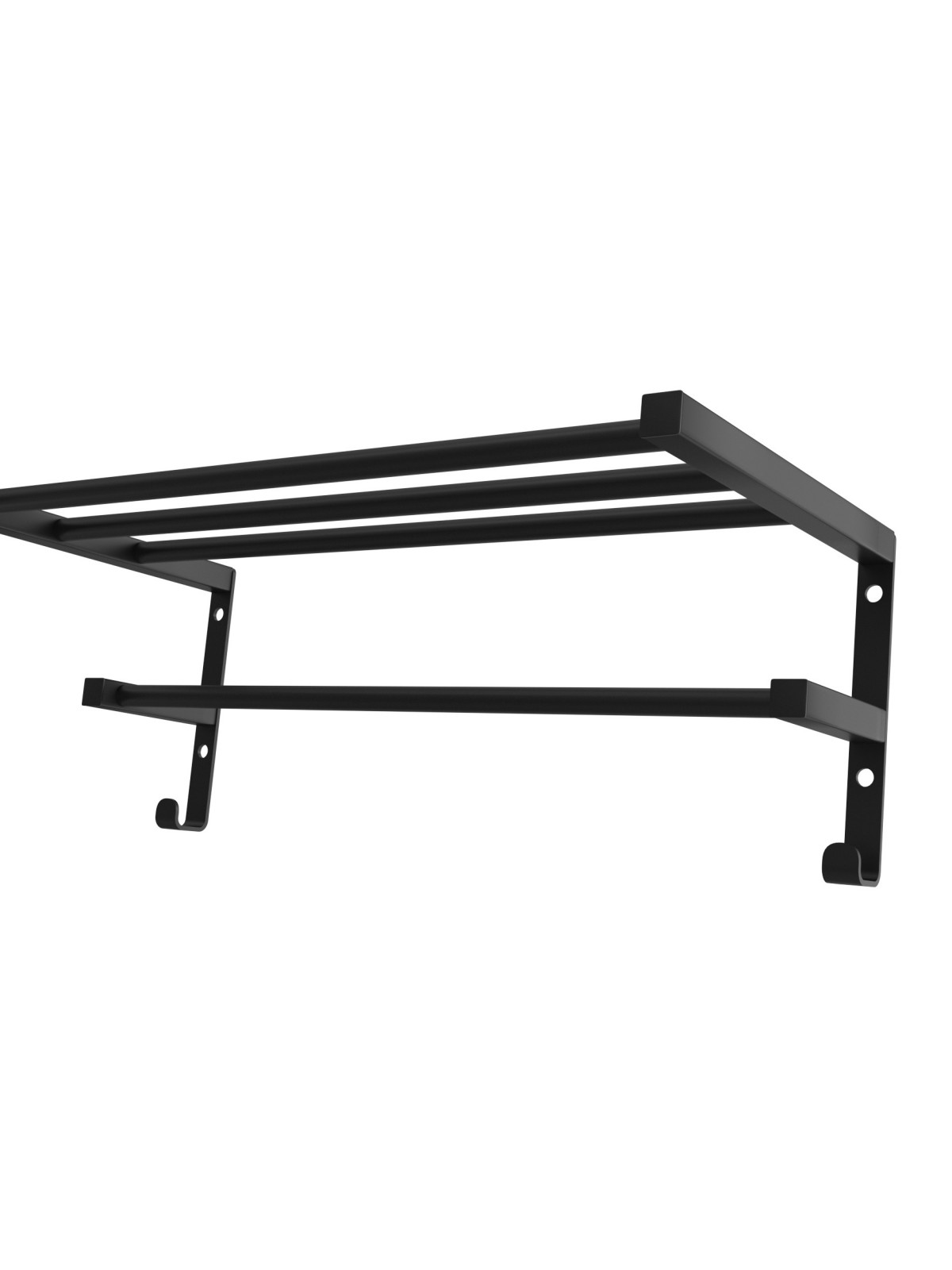 Полиця також має гачки та додаткові перемички, які можна використовувати як для зберігання, так і для висушування рушників та речей.