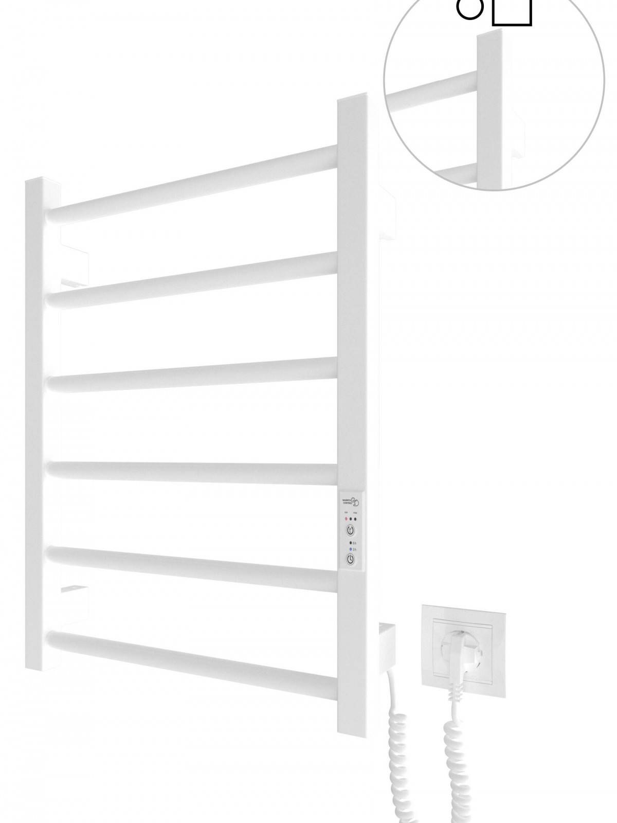 Працює за технологією сухого ТЕНу. Обладнана вбудованим таймер-регулятором і конектором для підключення до живлення з будь-якого боку. Оснащена комплектом для прихованого підключення.