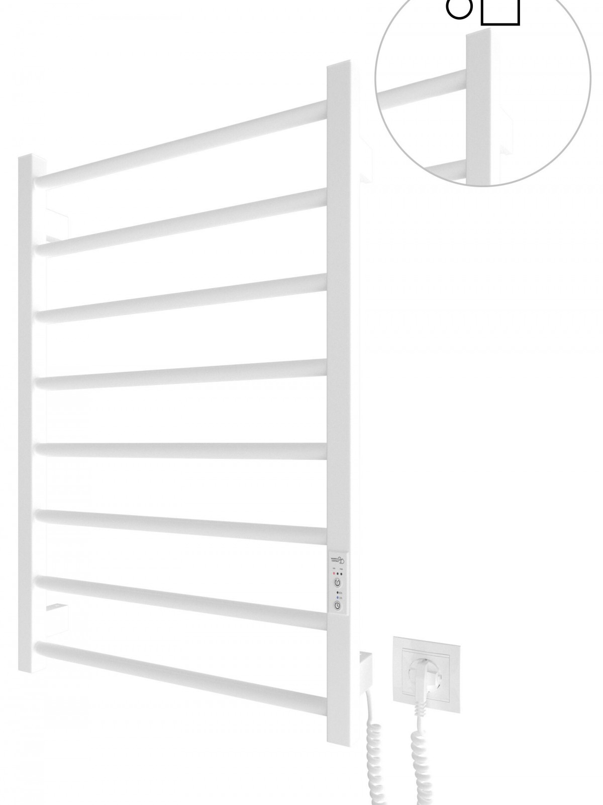 Працює за технологією сухого ТЕНу. Обладнана вбудованим таймер-регулятором і конектором для підключення до живлення з будь-якого боку. Оснащена комплектом для прихованого підключення.