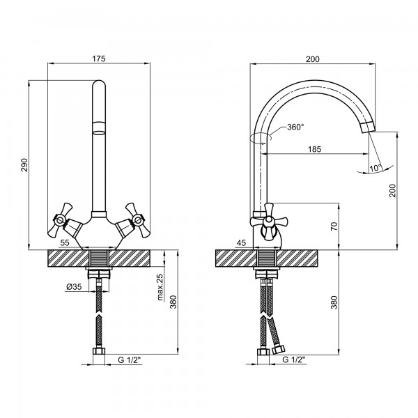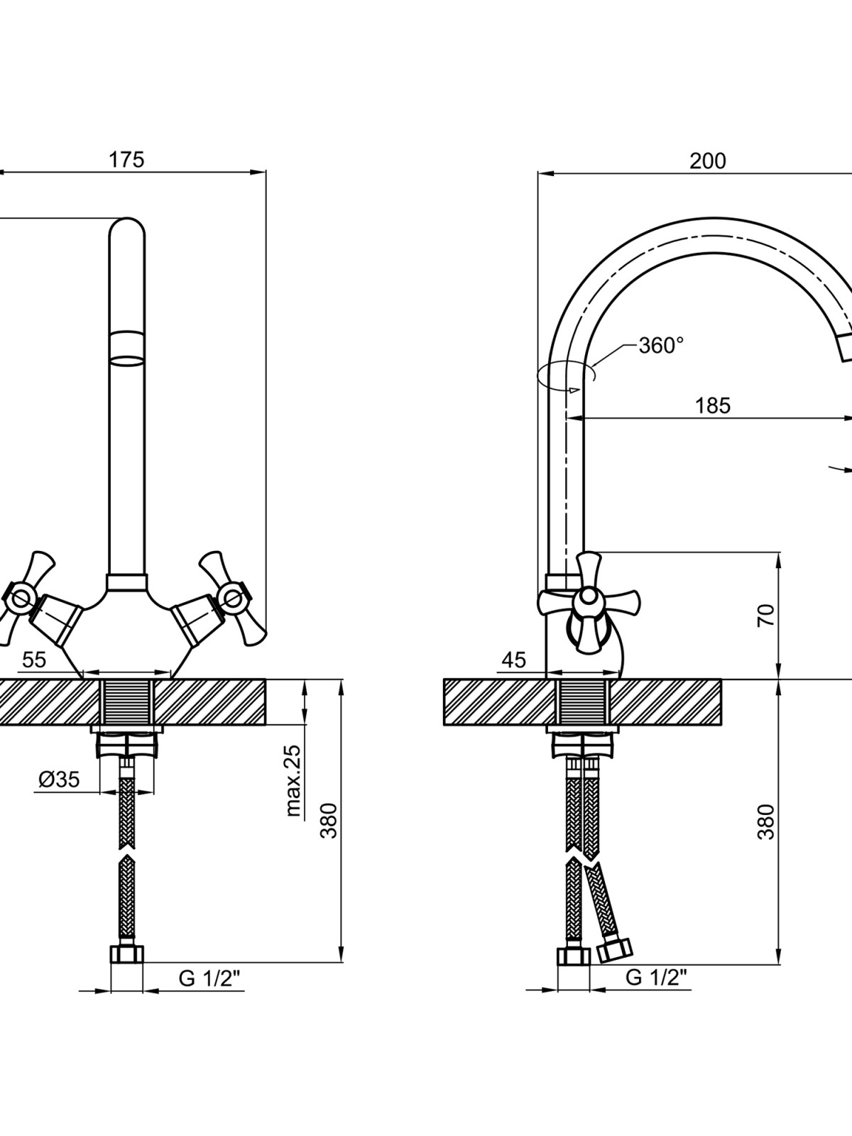 Додаткові характеристики: Довжина гнучкого підводу - 380 мм.