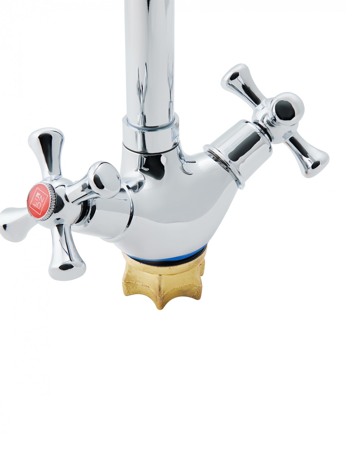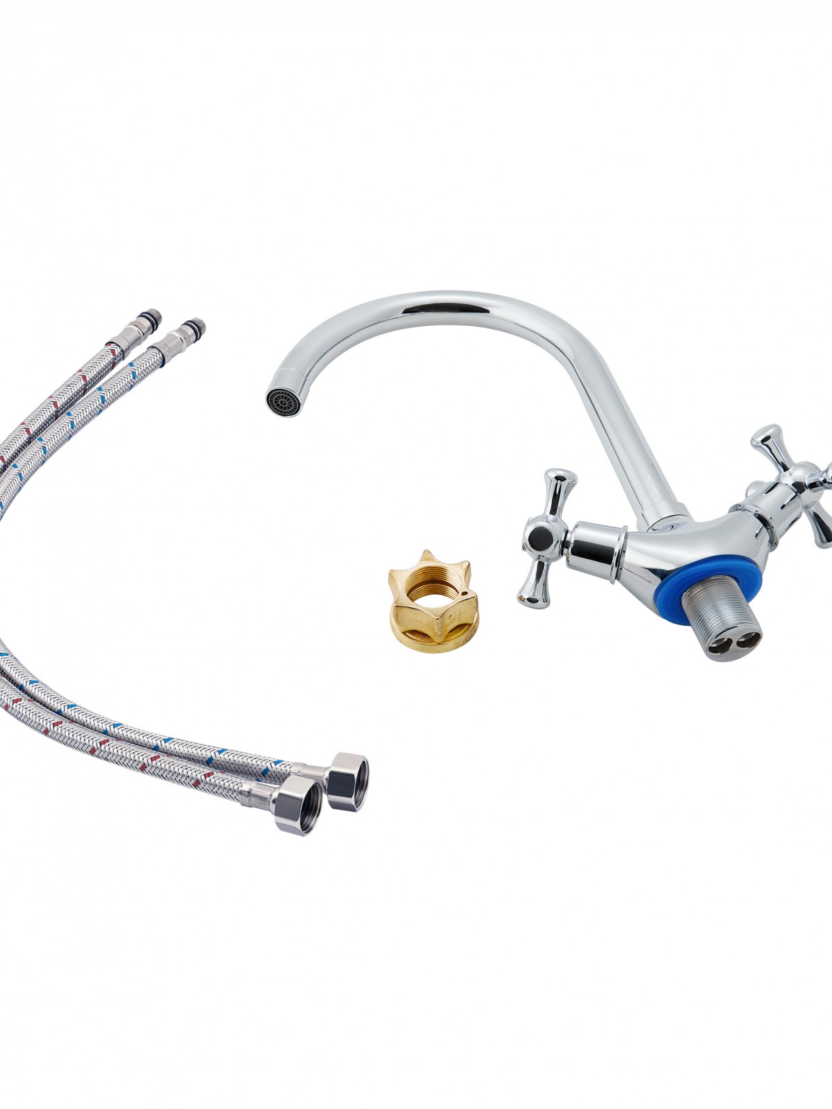 Змішувач для кухні Lidz (CRM) 75 21 271F-8 виготовлений з високоякісного цинку. Завдяки глянцевому хромованому покриттю виріб має оригінальний зовнішній вигляд і має більшу стійкість до зношування. Виконано в класичному стилі, з вентильними ручками для перемикання потоку холодної та гарячої води.