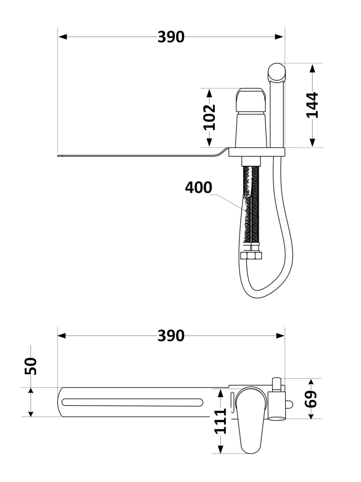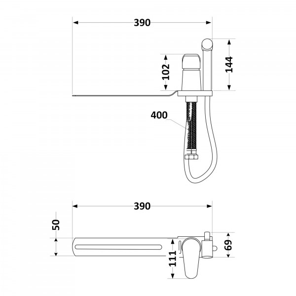 Габаритні розміри виробу (ШхГхВ), мм: 390х50х144