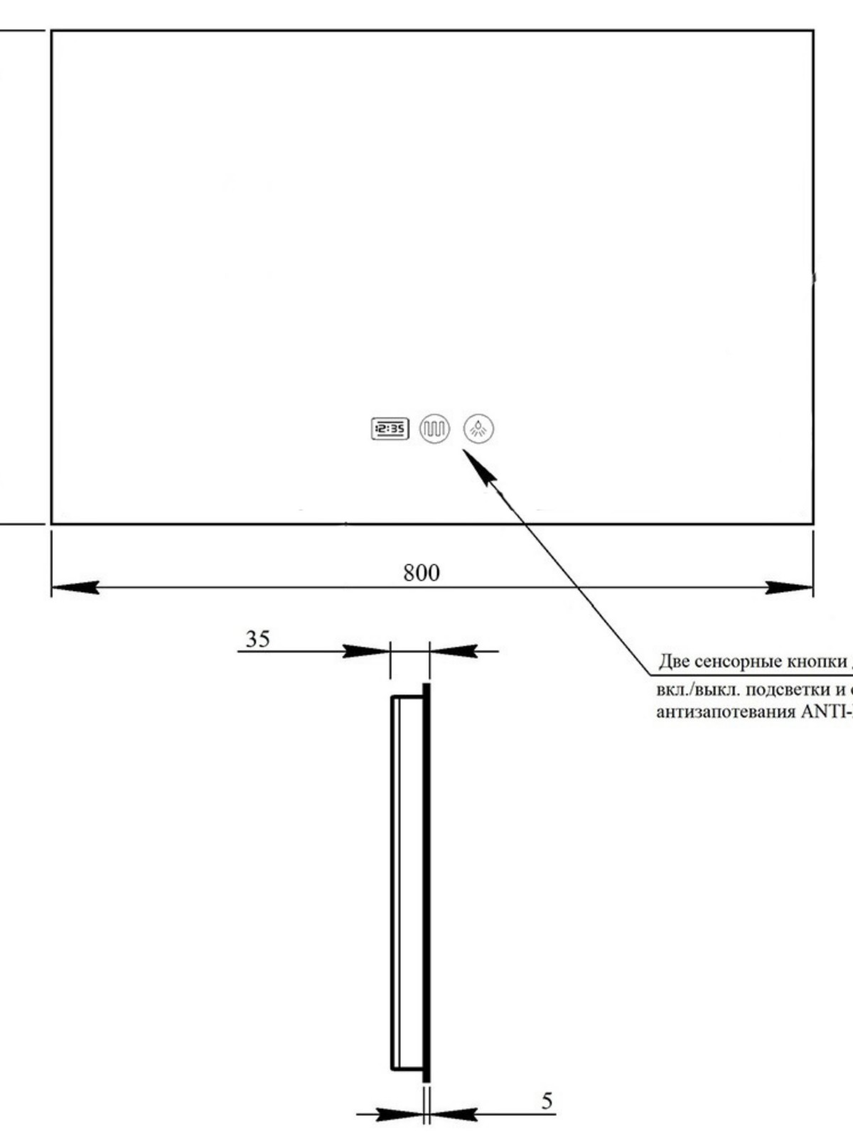 Габаритні розміри виробу (ШхГхВ), мм: 800×35×600