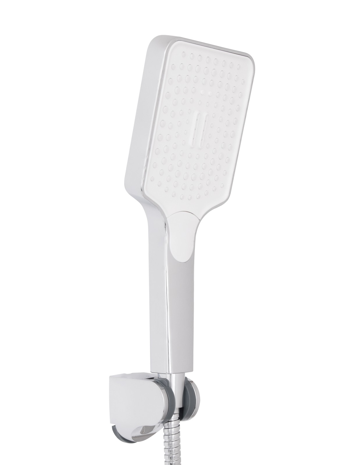 Комплектація: Змішувач, лійка для ручного душу, душовий шланг, кронштейн для ручного душу, кріплення.