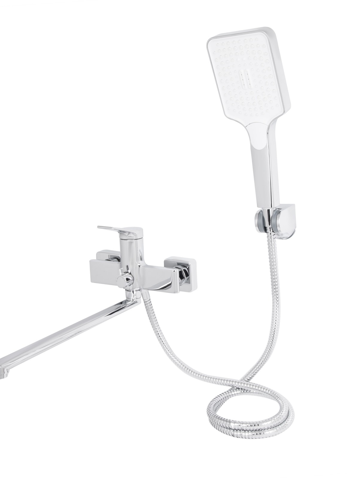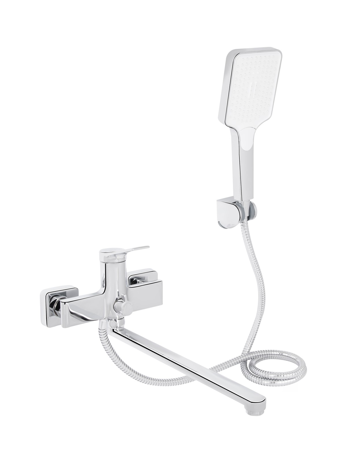 Комплектація: Змішувач, лійка для ручного душу, душовий шланг, кронштейн для ручного душу, кріплення.