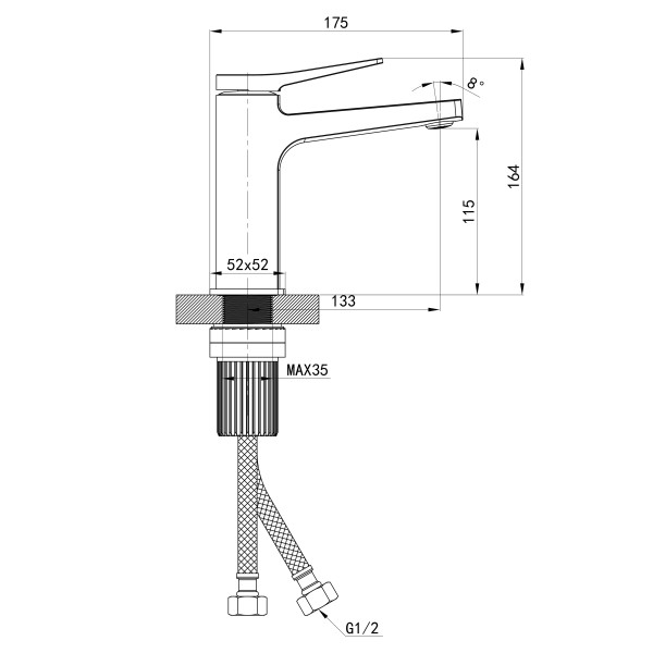 Комплектація: Змішувач, гнучкий підвід, кріпильні деталі
