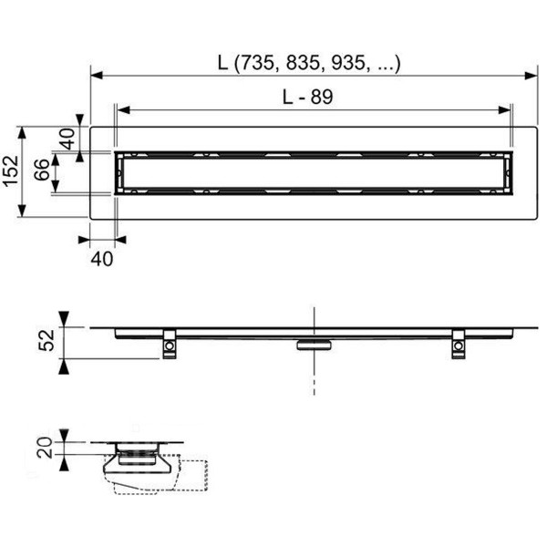 650800 Канал зливний прямий TECEdrainline довжина 835 мм, для натурального каменю (1 сорт)