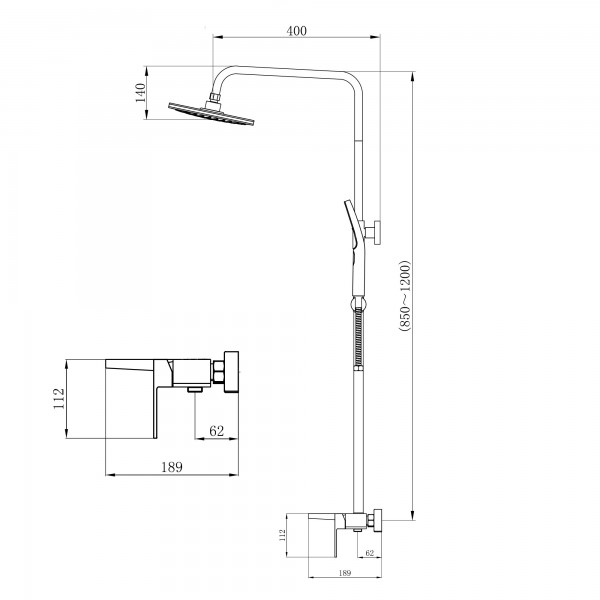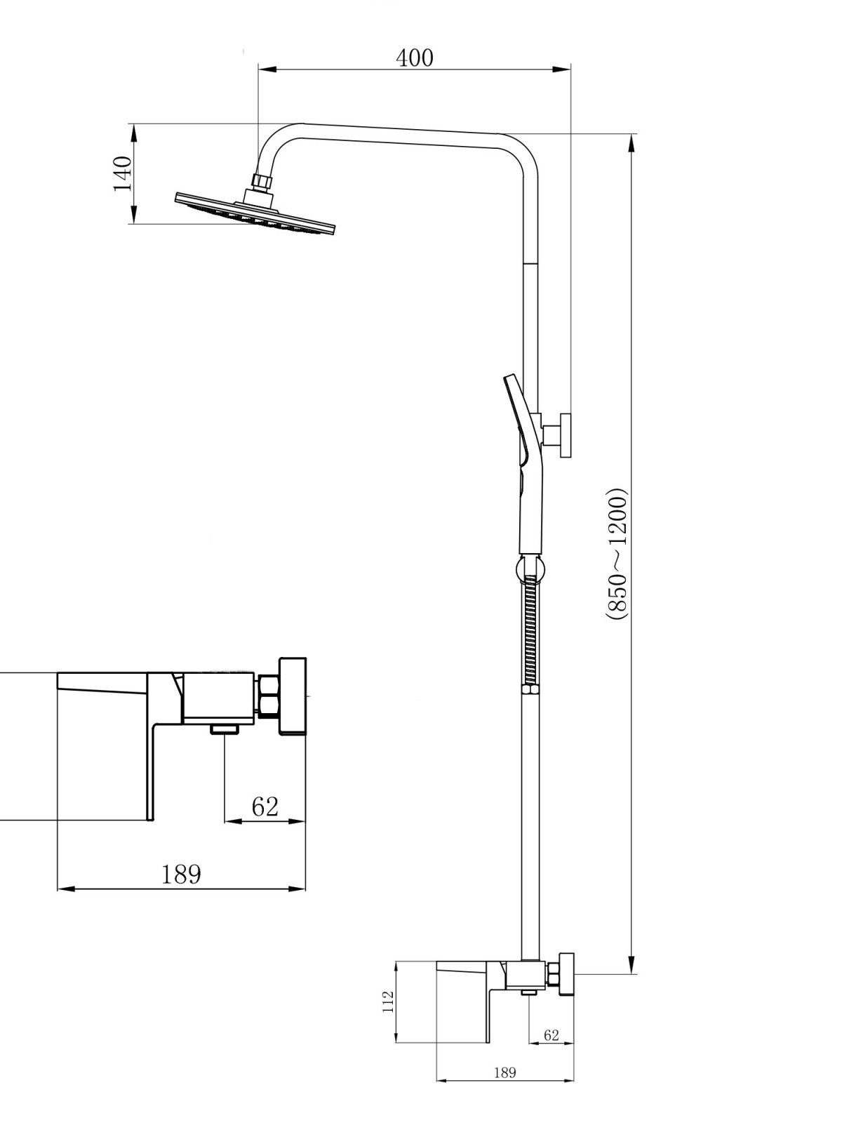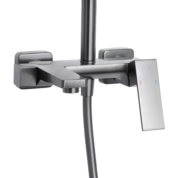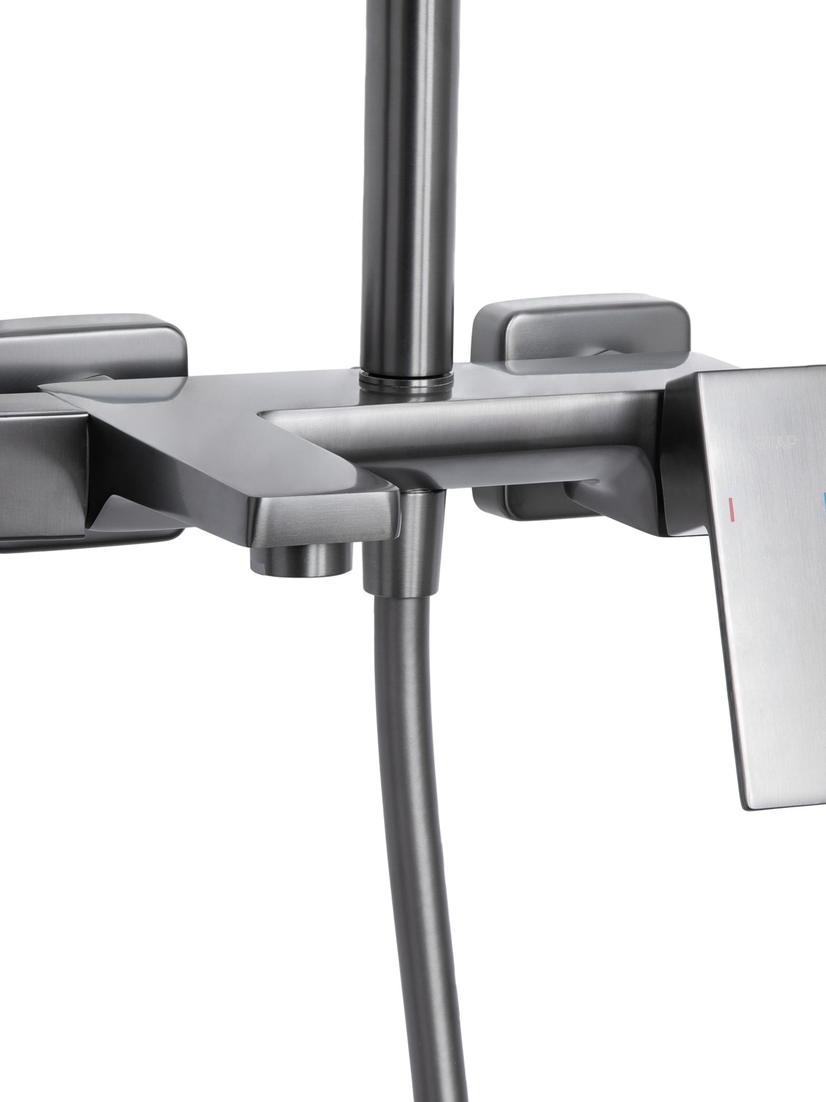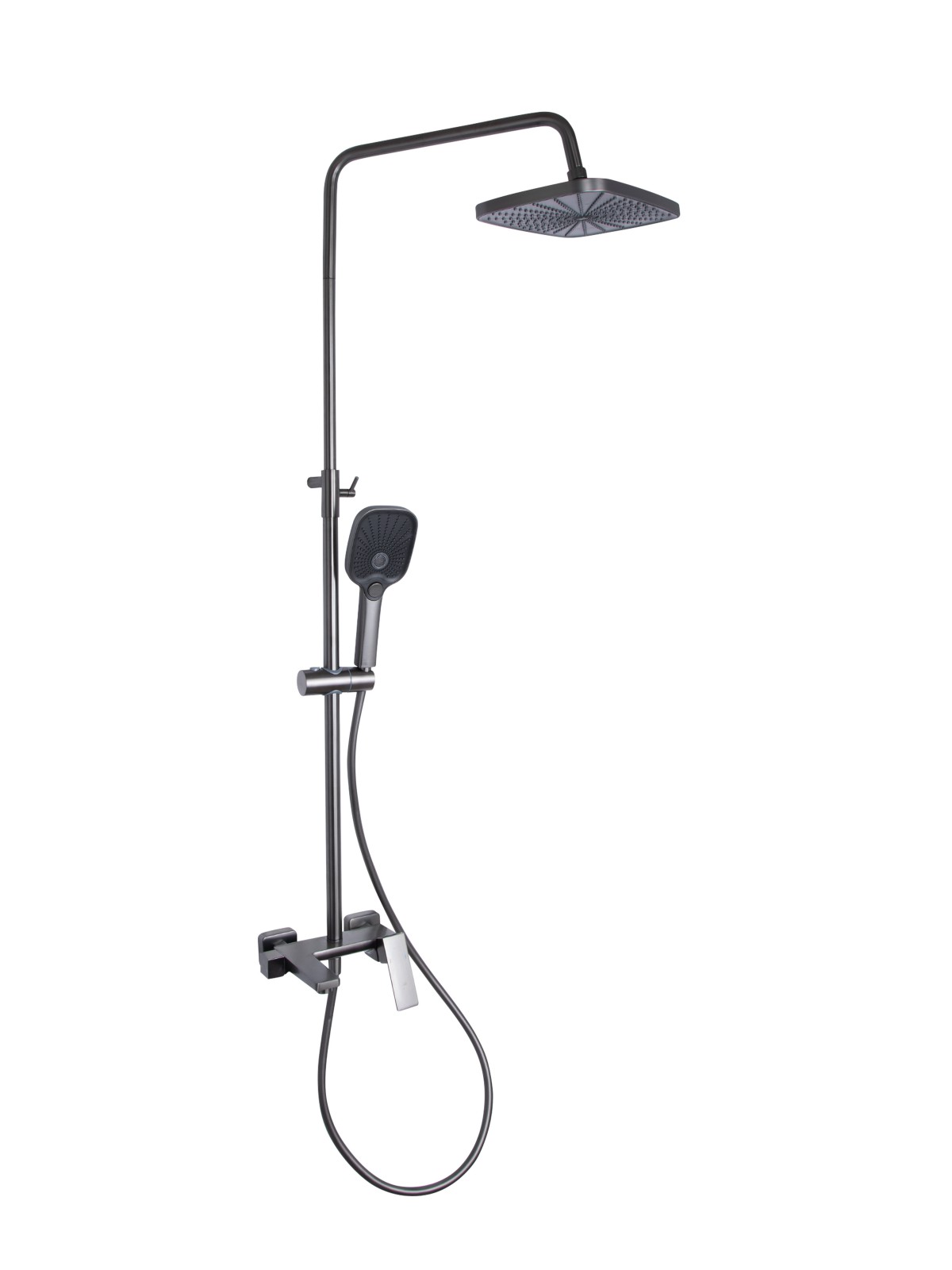 Комплектація: Змішувач, душова стійка, лійка для ручного душу, душовий шланг, кронштейн, деталі кріплення.