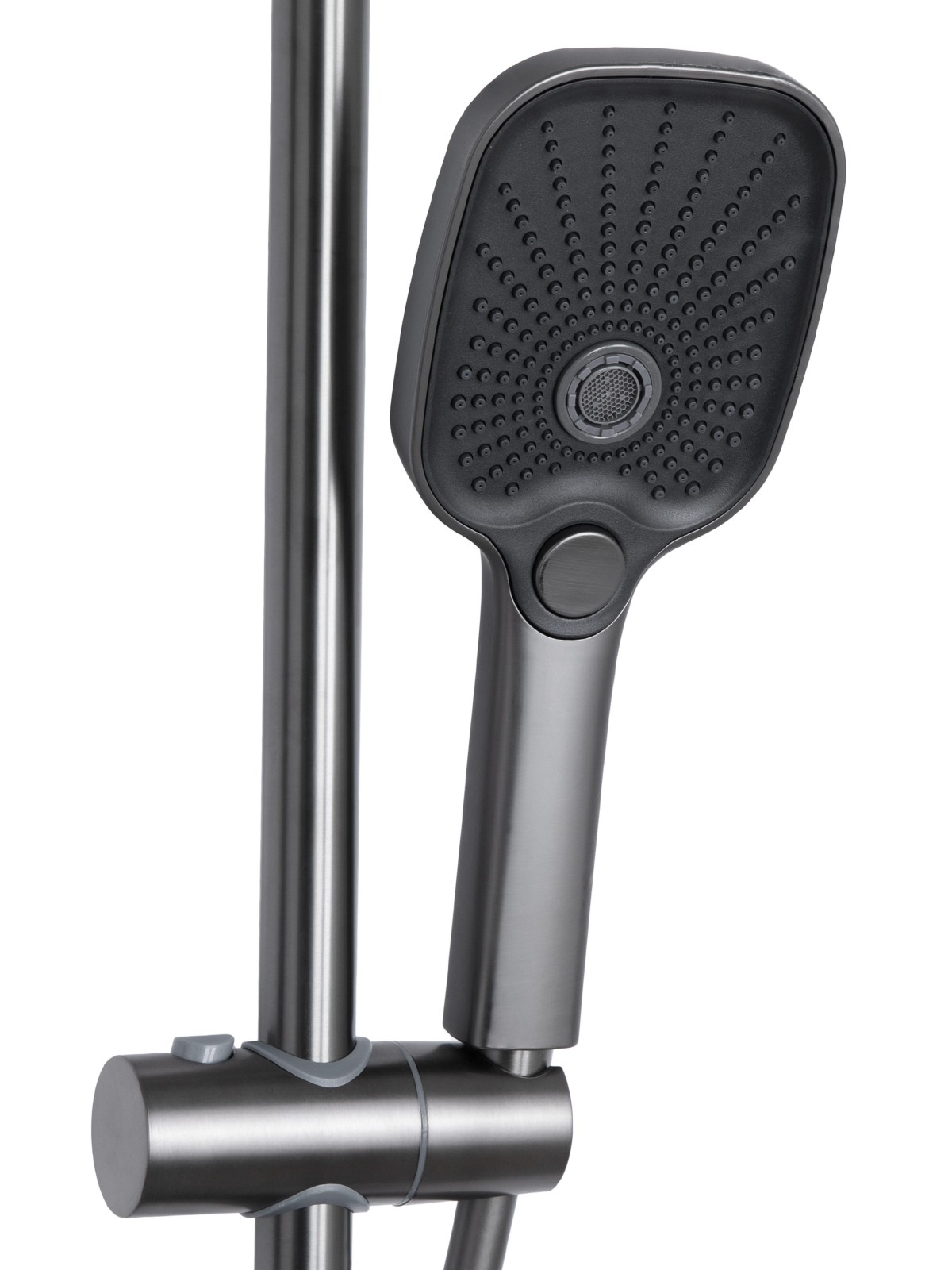 Універсальна душова система Qtap Gemini у кольорі Gunmetal Black з покриттям PVD namp;#8211; це елегантне та функціональне рішення для вашої ванної кімнати. Ця система підтримує підключення до трьох споживачів та оснащена виливом, забезпечуючи зручність та гнучкість у використанні. Модель QTGEM111GMB45688 виконана з міцних матеріалів із високоякісним покриттям PVD, що гарантує довговічність та стійкість до зносу. Сучасний дизайн та витончений колір Gunmetal Black додадуть вашій ванній кімнаті стильний та преміальний вигляд.