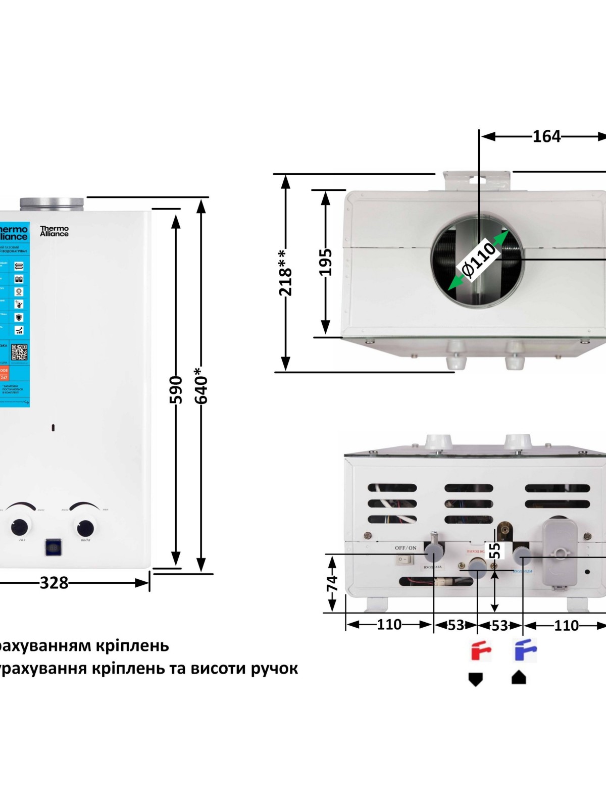 Комплектація: Газовий водонагрівач, батарейки, набір кріплення, інструкція, гарантійний талон
