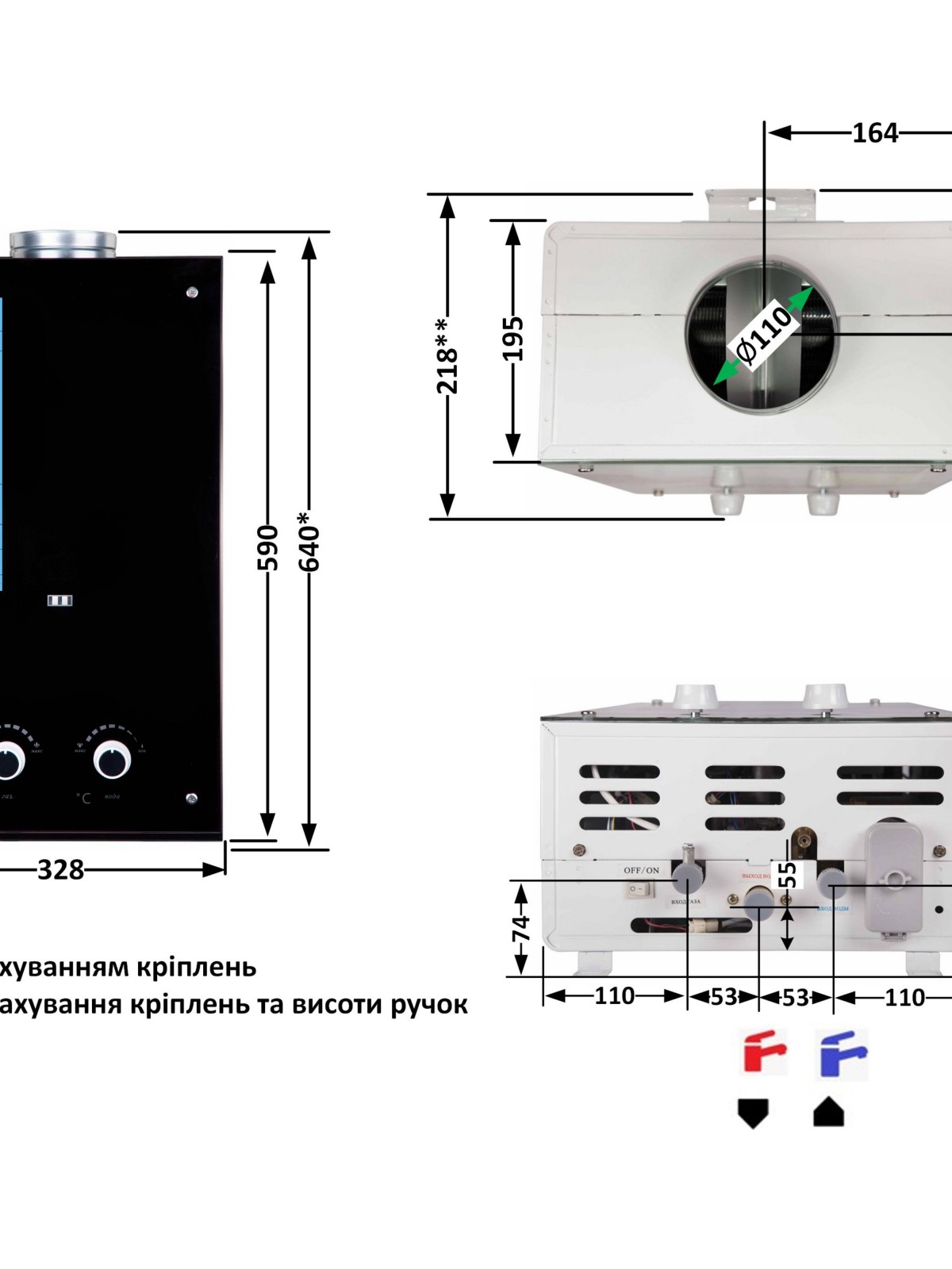 Комплектація: Газовий водонагрівач, батарейки, набір кріплення, інструкція, гарантійний талон