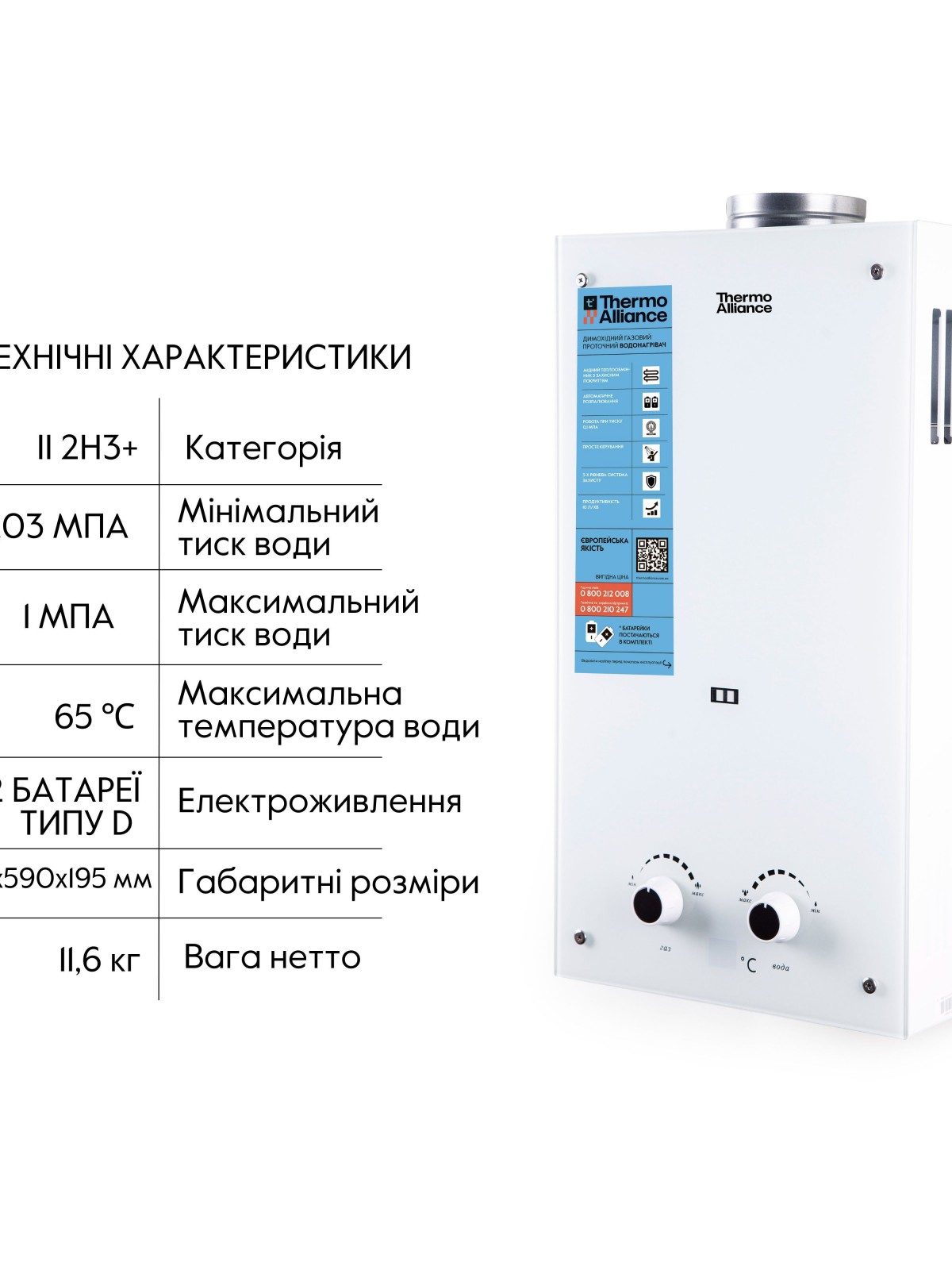 Комплектація: Газовий водонагрівач, батарейки, набір кріплення, інструкція, гарантійний талон