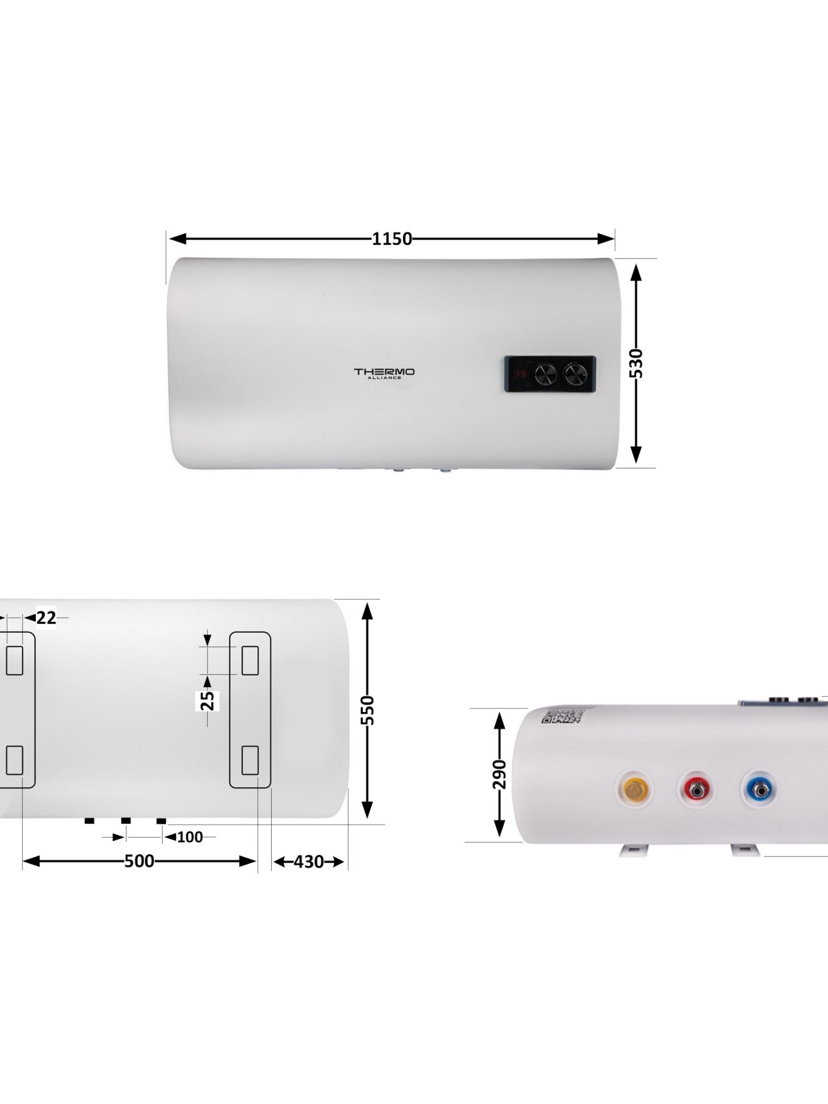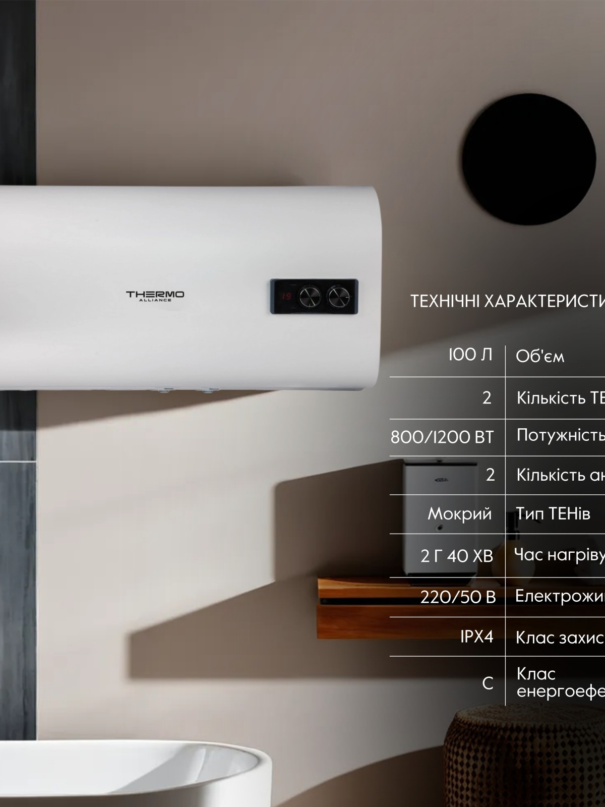 Водонагрівач Thermo Alliance 100 л, мокрий ТЕН 2 кВт (0,8 + 1,2) DT100H20GPD призначений для горизонтального монтажу з нижнім підведенням труб. Такий бойлер namp;#8212; ідеальне рішення для приміщень з обмеженим простором для встановлення, а також для розміщення в нішах і шафах. Потужні ТЕНи (800 і 1200 Вт) швидко нагрівають воду та оптимально підтримують її температуру. Захист від корозії забезпечують два магнієві аноди та емалеве покриття внутрішнього бака. Зручна панель керування оснащена дисплеєм індикації температури води. Товщина внутрішнього бака namp;#8212; 2 мм.