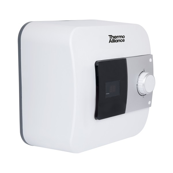 Водонагрівач Thermo Alliance 10 л над мийкою, мокрий ТЕН 1,5 кВт SF10X15N вирішує завдання забезпечення гарячою водою, в першу чергу для миття посуду. Всередині бак компактного водонагрівача вкритий шаром емалі, які захищає поверхню від корозії. Патрубки 1/2nquot; для під’єднання до системи водопостачання розташовані знизу. На фронтальній поверхні корпусу namp;#8212; ручка управління та дисплей з індикацією температури нагріву. Товщина внутрішнього бака - 2 мм.