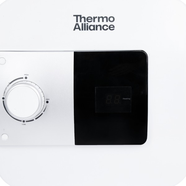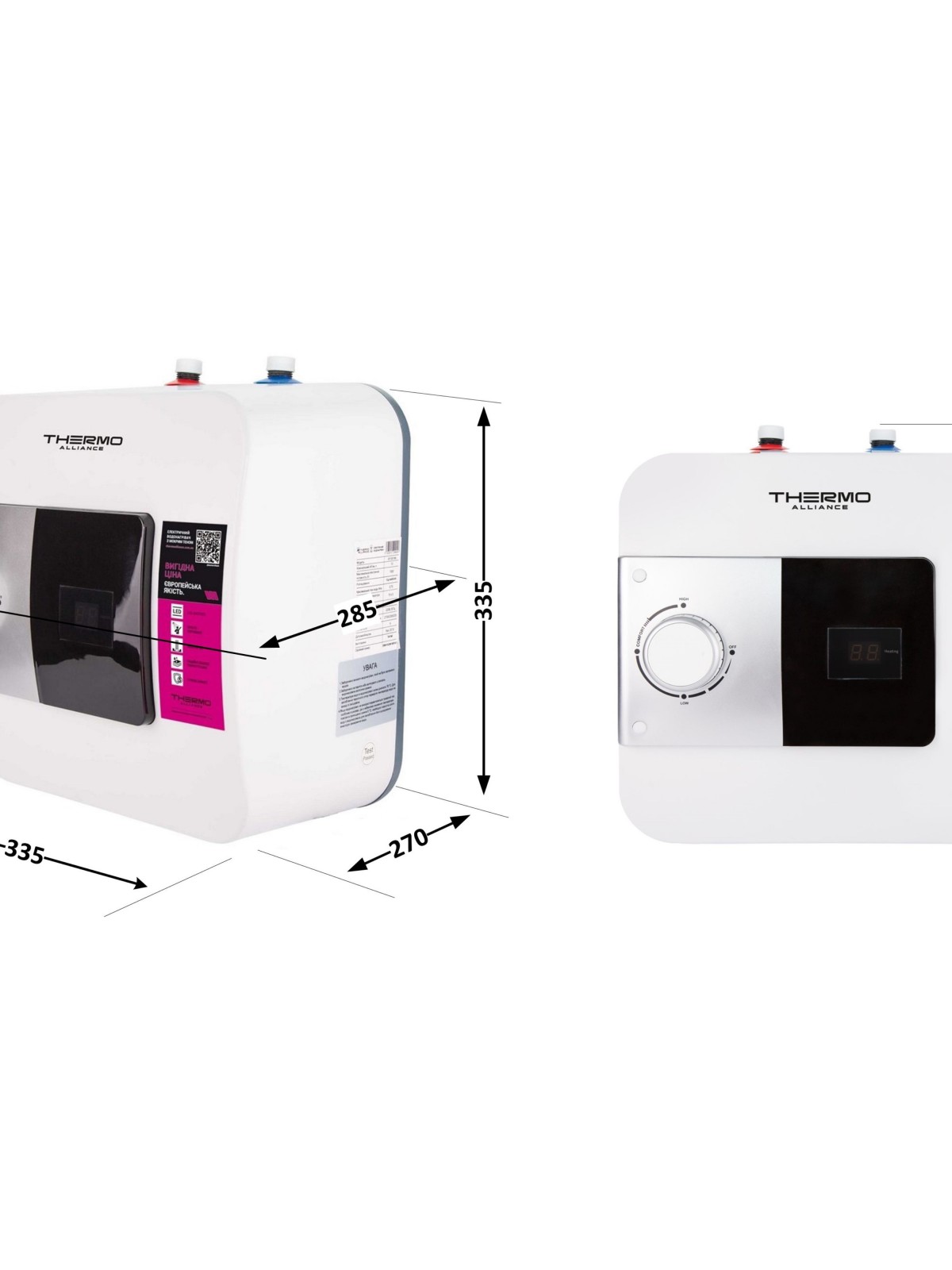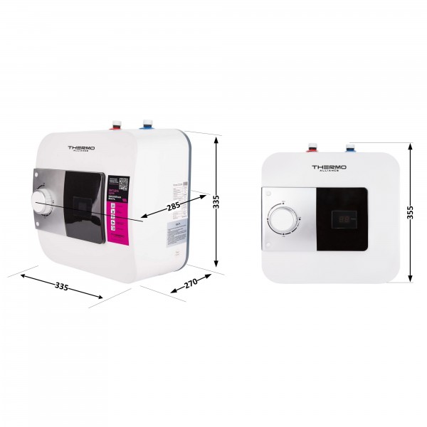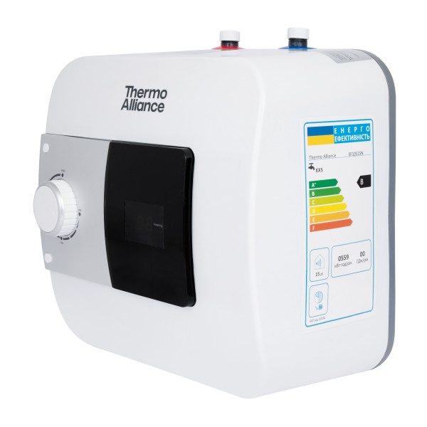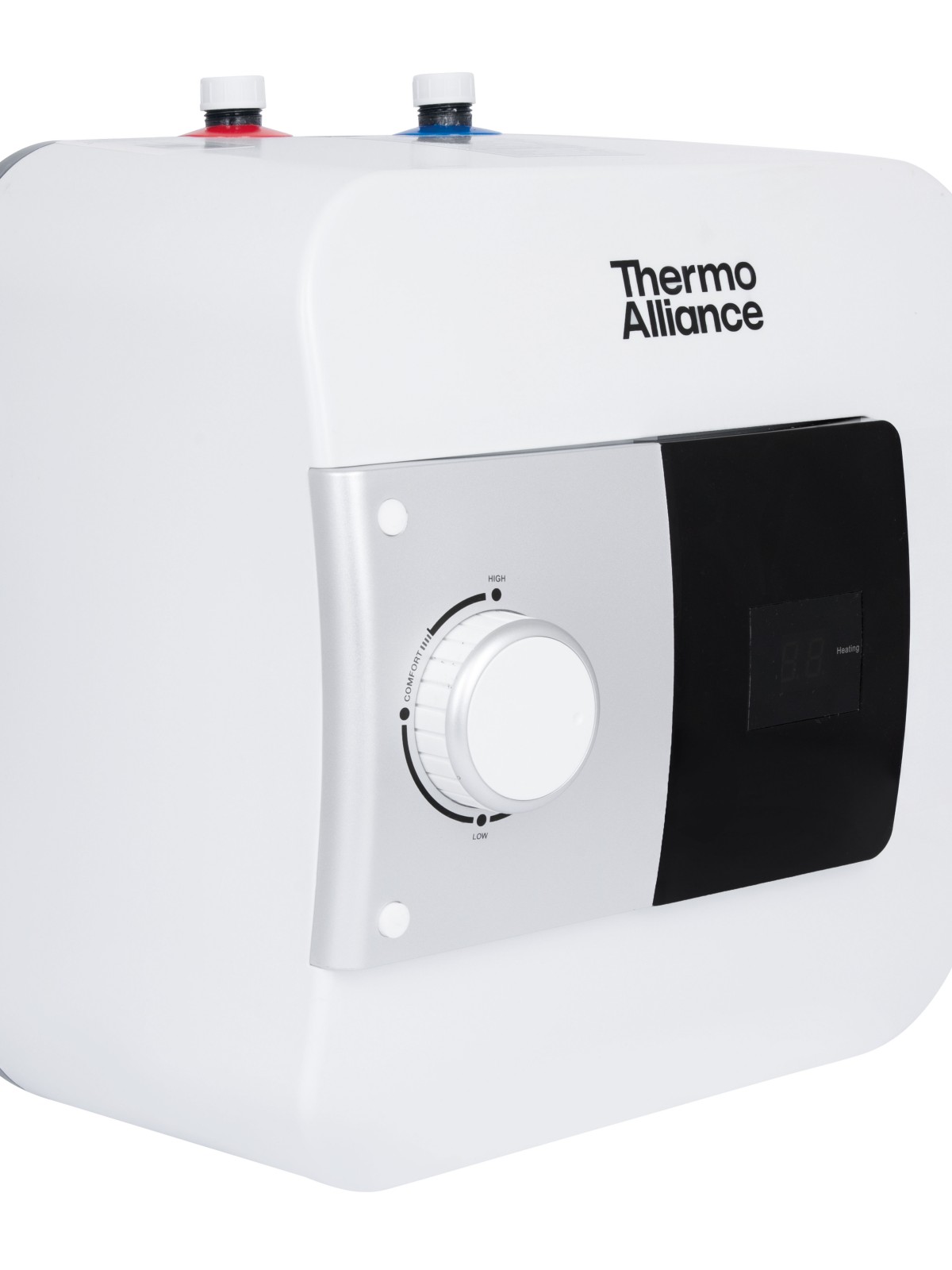 Водонагрівач Thermo Alliance 10 л під мийкою, мокрий ТЕН 1,5 кВт SF10S15N швидко нагріє невелику кількість води. Такий накопичувальний пристрій встановлюють в шафці під кухонним змішувачем. Патрубки підключення розміром1/2nquot; розташовані у верхній частині корпусу приладу. Панель управління оснащена індикатором роботи нагрівального елементу, дисплеєм, що показує температуру нагрівання. Бак зроблений зі сталі, емальоване покриття служить антикорозійним захистом. Товщина внутрішнього бака - 2 мм.
