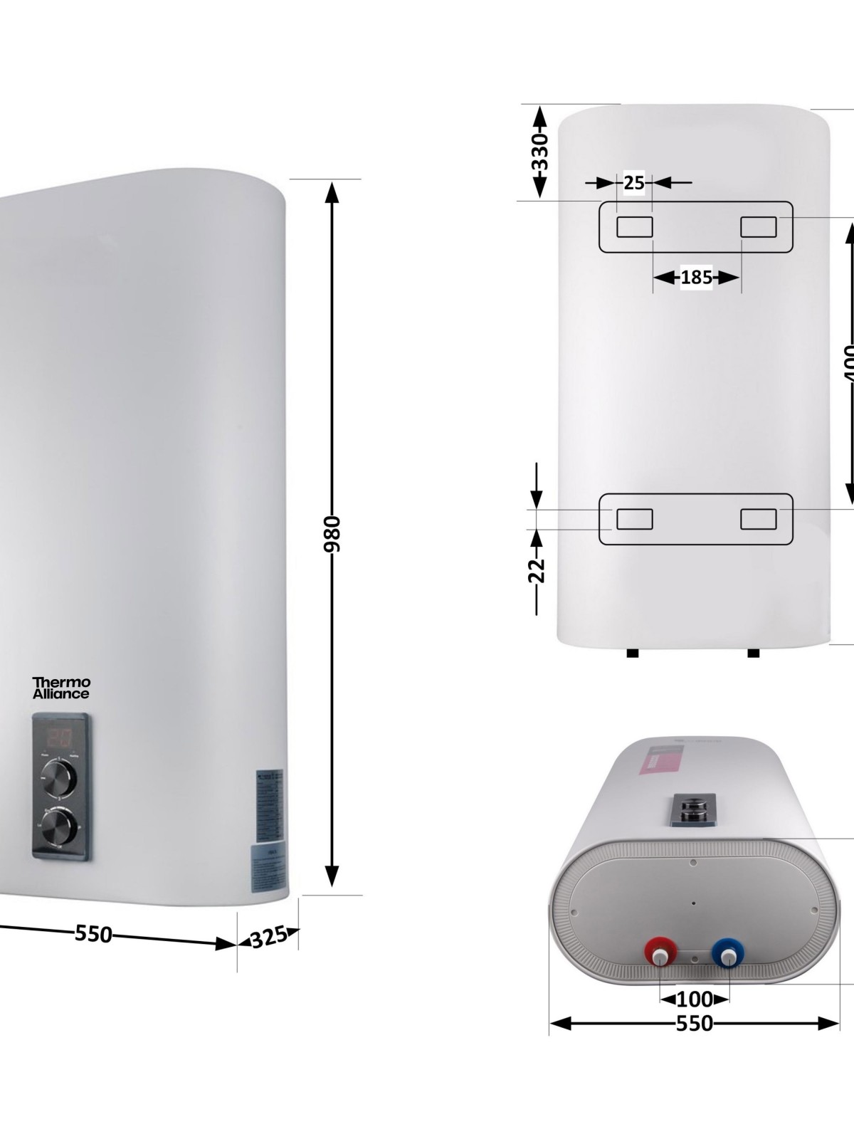 Водонагрівач Thermo Alliance 80 л, мокрий ТЕН 2 кВт (0,8+1,2) DT80V20G(PD)/2 дозволить розв’язати проблему гарячого водозабезпечення там, де місце для монтажу обмежено. Плоский корпус бойлера можна горизонтально розмістити в шафі або в ніші. Нагрівання води забезпечують 2 надійних нагрівальних елементи. Функцію захисту від корозії виконують два магнієвих аноди й шар емалевого покриття внутрішнього бака. Зручна панель управління з дисплеєм індикації температури води. Товщина внутрішнього бака - 2 мм.