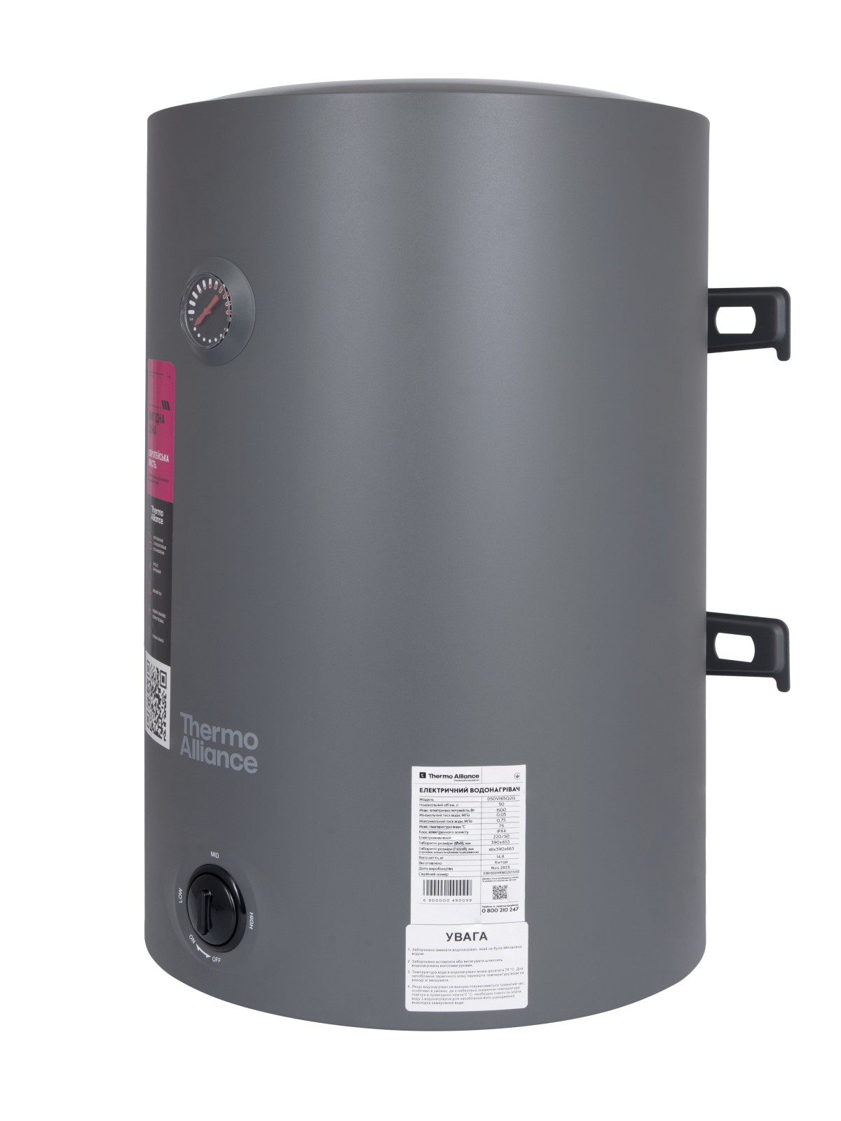 Електричний водонагрівач Thermo Alliance об’ємом 80 л у сірому кольорі namp;#8212; універсальна модель з можливістю вертикального або горизонтального монтажу, оснащена «мокрим» ТЕНом потужністю 1,5 кВт для стабільного та рівномірного нагріву води. Надійний бак із внутрішнім антикорозійним захистом, ефективна теплоізоляція та продумана конструкція забезпечують економне енергоспоживання, довговічність і комфорт щоденного користування.