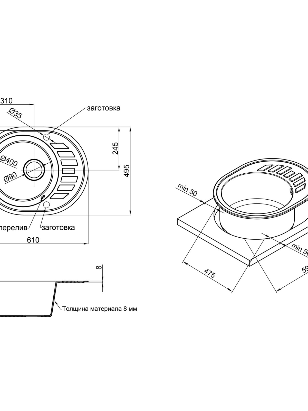 Товщина матеріалу, мм: 8