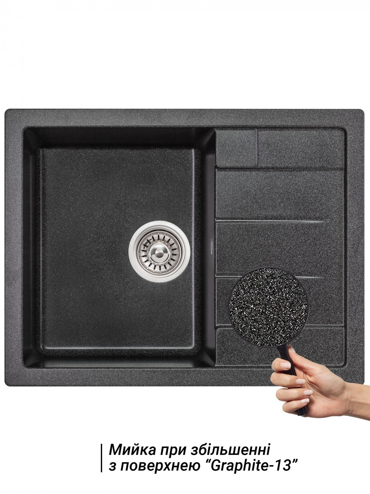 Кухонна мийка Lidz (GRF-13) namp;#8212; надійний вибір для тих, хто шукає якісну врізну мийку зі штучного каменю. Міцний матеріал гарантує довговічність, стійкість до пошкоджень і перепадів температур. Універсальне крило додає зручності у щоденному користуванні, а лаконічний дизайн гармонійно доповнить будь-який інтер'єр. Мийка комплектується сифоном та зливом-переливом для швидкого монтажу.