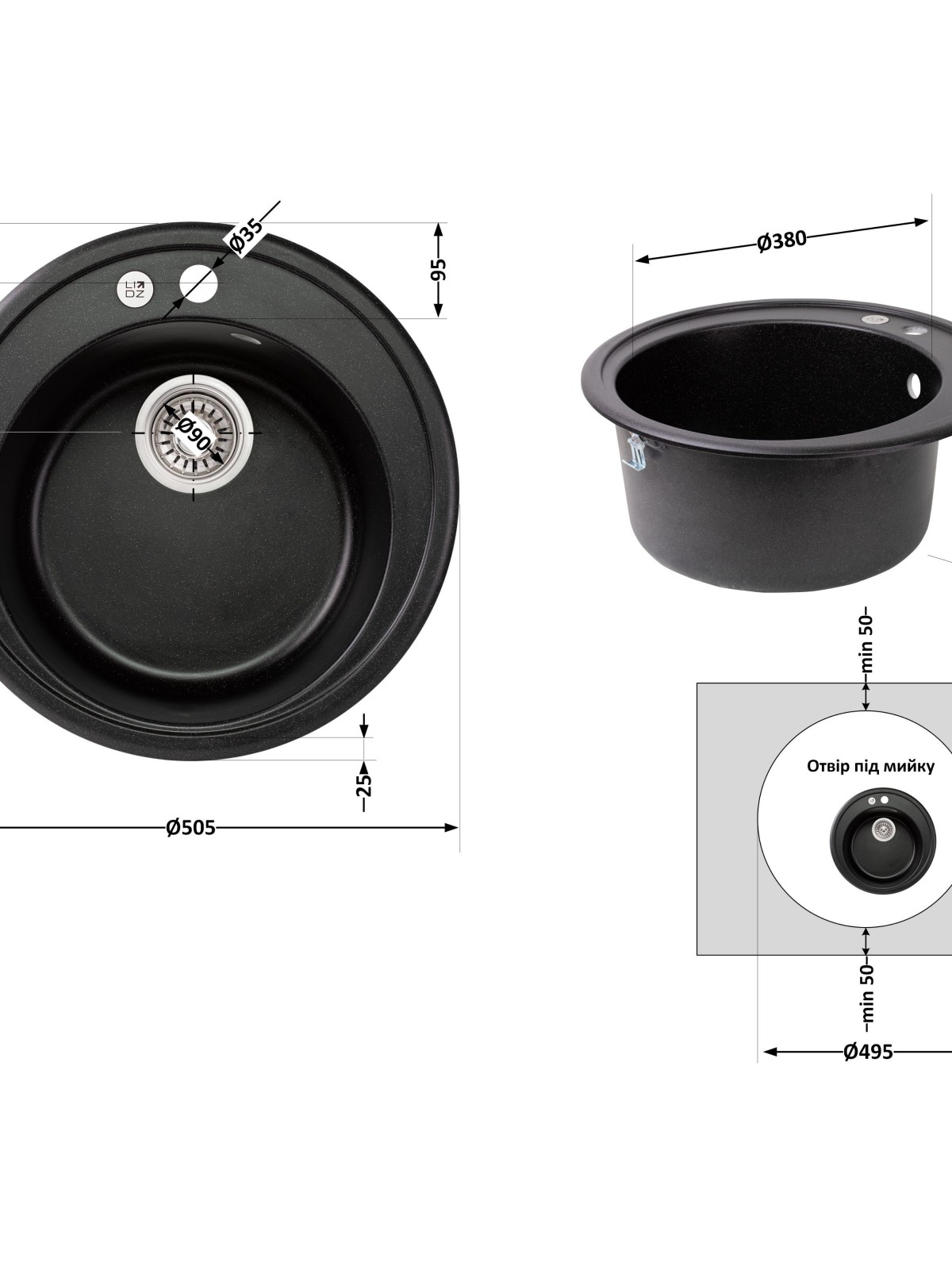 Кругла кухонна мийка Lidz (BLM-14) namp;#8212; компактне та практичне рішення для будь-якої кухні. Врізна мийка з міцного штучного каменю стійка до пошкоджень, перепадів температур і впливу побутової хімії. Завдяки лаконічній круглій формі ідеально підходить для невеликих кухонь або кухонних зон, забезпечуючи комфорт у щоденному використанні. У комплект входить сифон і злив-перелив для зручного монтажу.