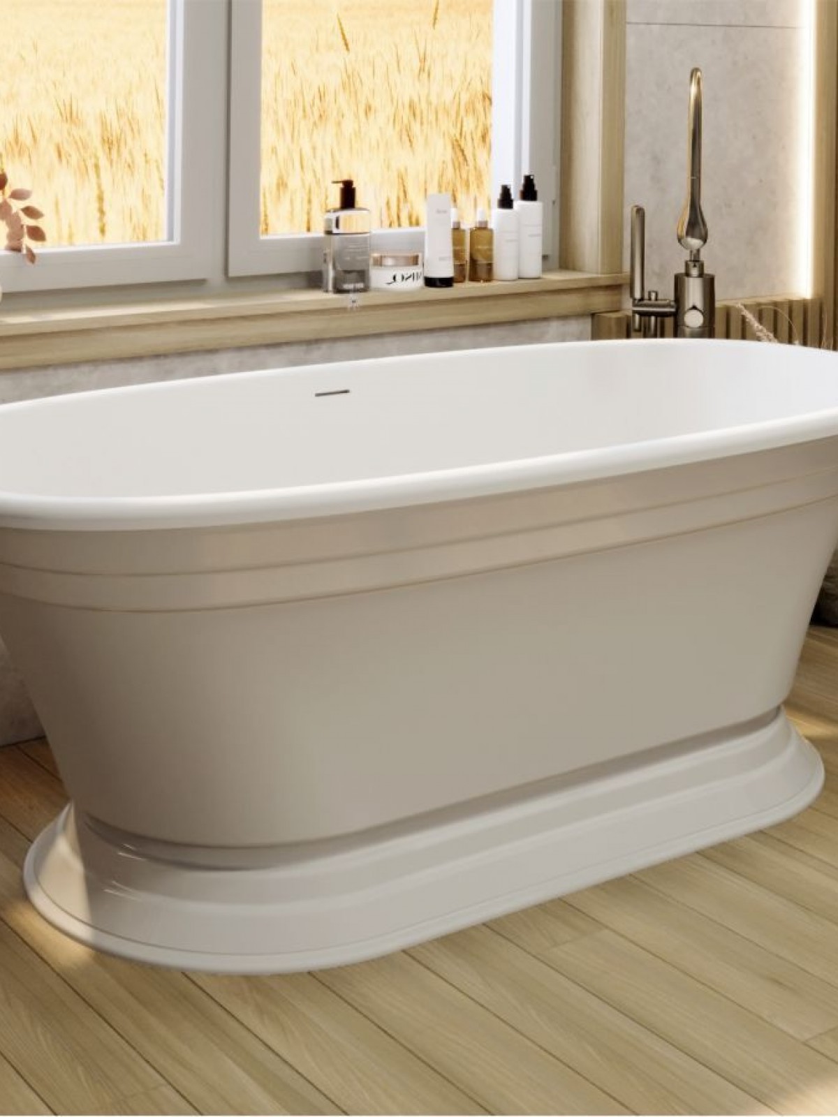 - Довговічність матеріалу. Ванни з литого мармуру є ремонтопридатними, стійкими до барвників і сонячних променів.