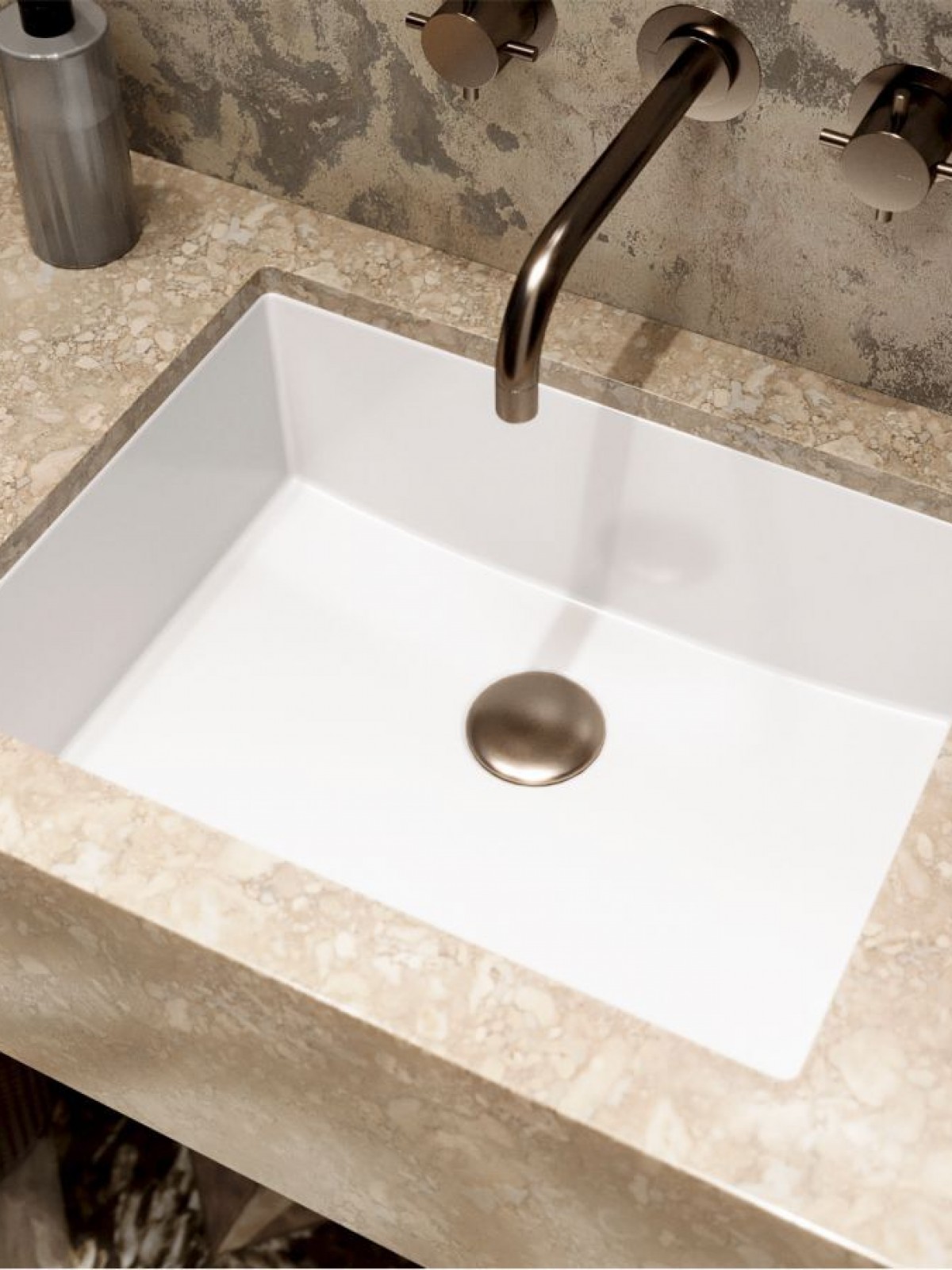 Прямокутний за формою чаші раковина має тип монтажу - під стільницю, врахуйте це перед замовленням меблів у ванну кімнату.