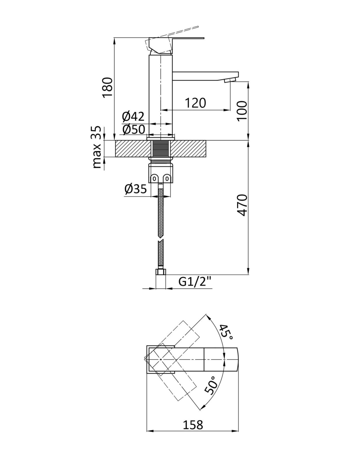 Діаметр монтажного отвору, мм: 35
