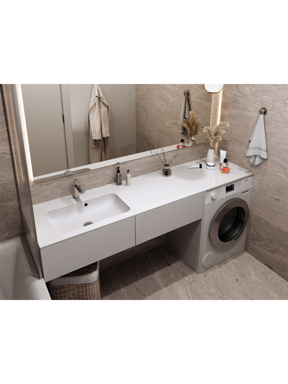 Прямокутний за формою чаші раковина має тип монтажу - на тумбу, врахуйте це перед замовленням меблів у ванну кімнату.