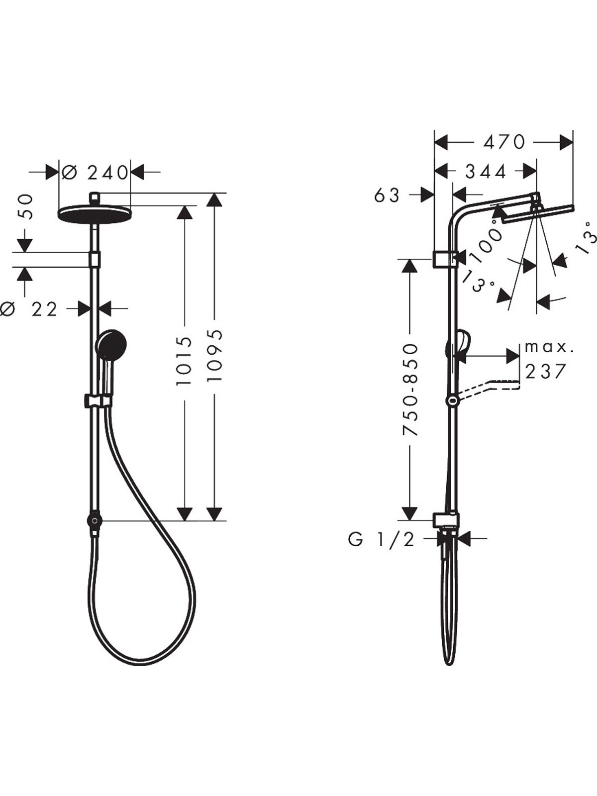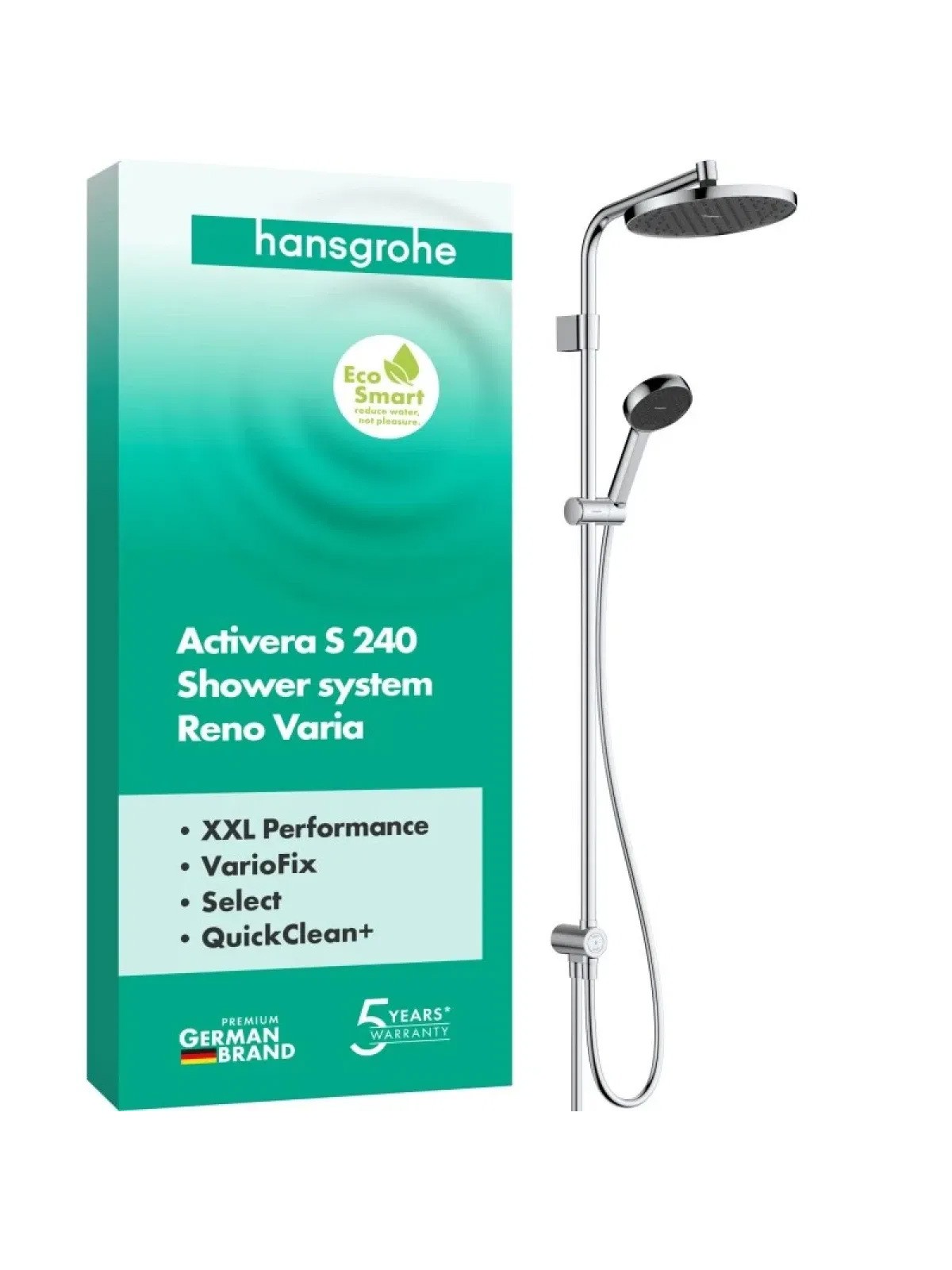 28074000 HG Activera S Душова система Showerpipe 240 1jet EcoSmart Reno Varia, хром (1 сорт)