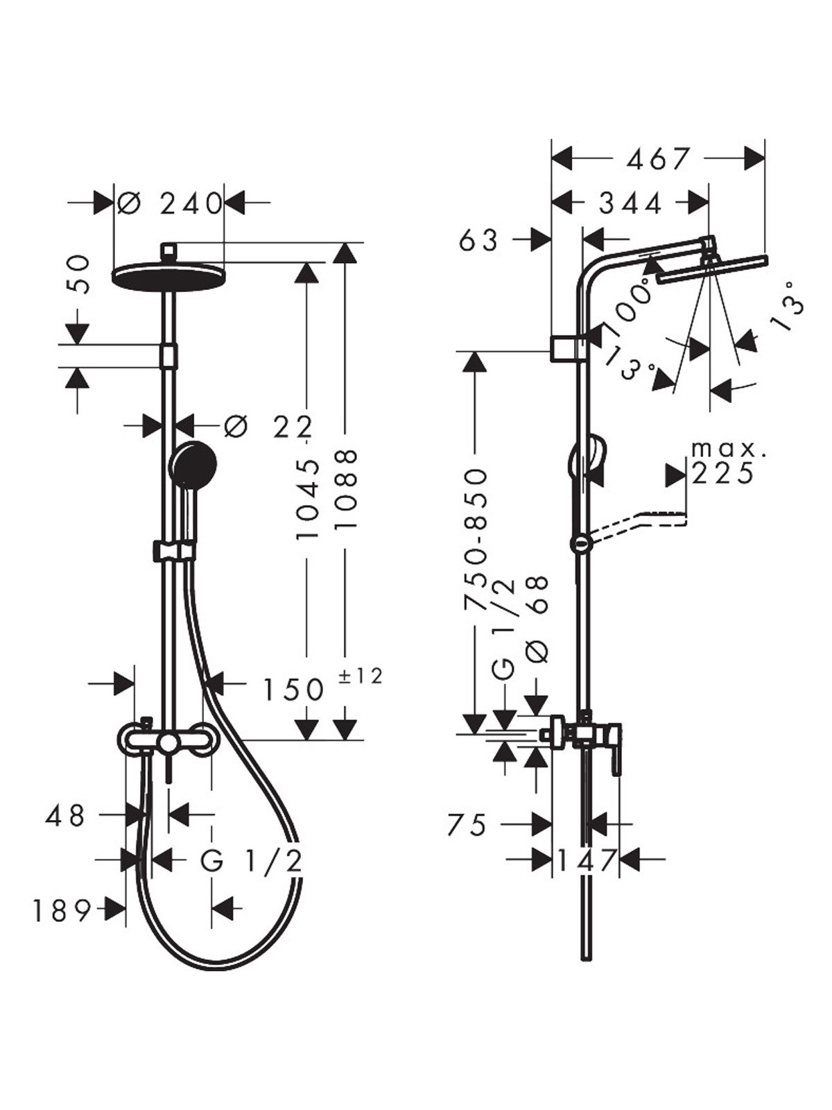 28875000 HG Activera S Душова система Showerpipe 240 1jet EcoSmart з одноважільним змішувачем Varia, хром (1 сорт)
