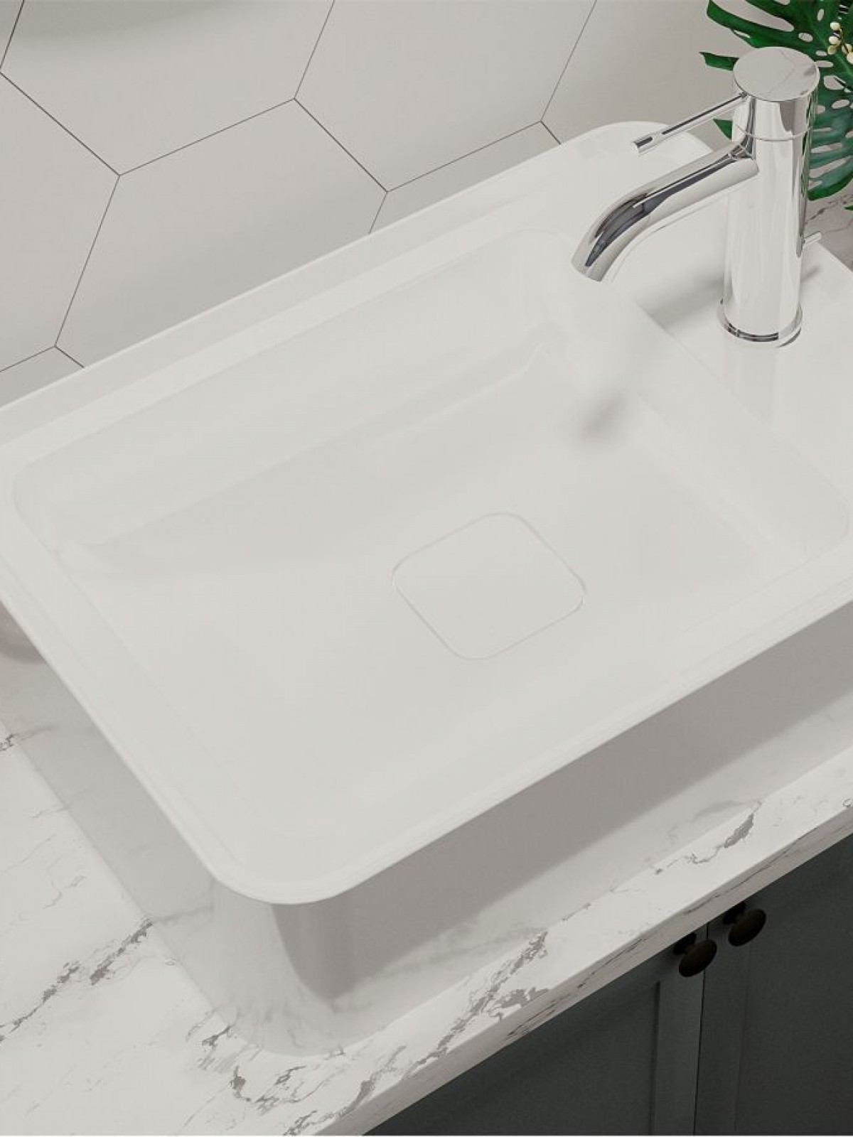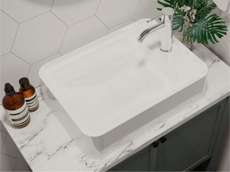 Прямокутний за формою чаші раковина має тип монтажу - накладний, врахуйте це перед замовленням меблів у ванну кімнату.