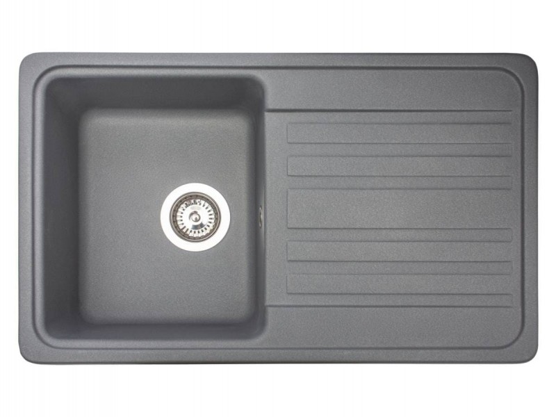 Прямокутна кухонна мийка VERSAL має однорідну текстуру та колір - сірий. Кількість чаш - 1. Тип установки - врізний. Матеріал мийки - Mirastone - не всочує запахи, відштовхує жир та забруднення, а також не змінює кольору в процесі експлуатації.