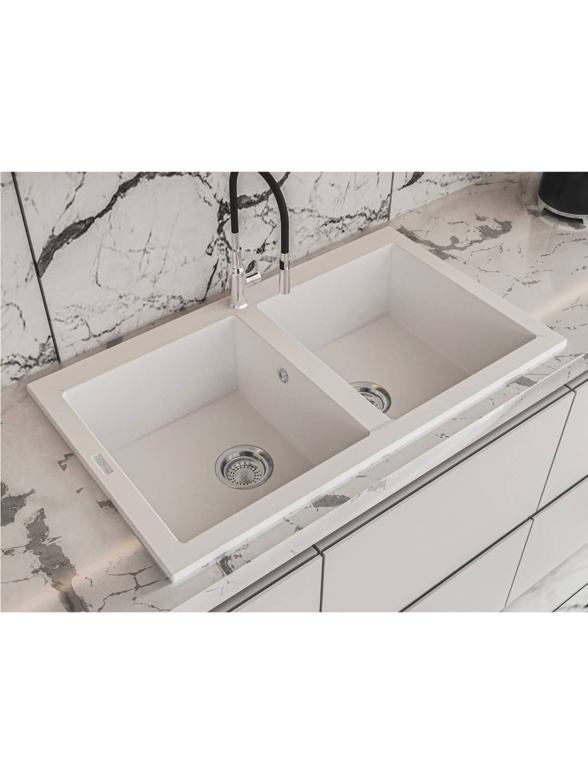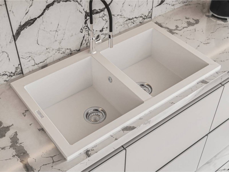 Прямокутна кухонна мийка WESTEROS має однорідну текстуру та колір - білий. Кількість чаш - 2. Тип установки - врізний. Матеріал мийки - Mirastone - не всочує запахи, відштовхує жир та забруднення, а також не змінює кольору в процесі експлуатації.