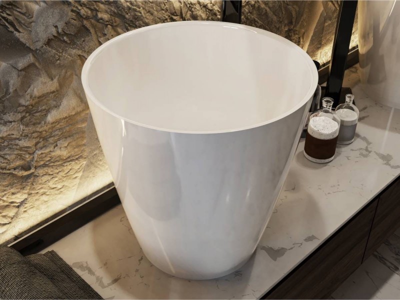 Глянец раковина зі штучного каменю гармонійно доповнить дизайн сучасної ванної кімнати. Матеріал умивальника - Miramarble.