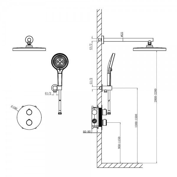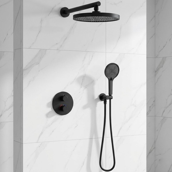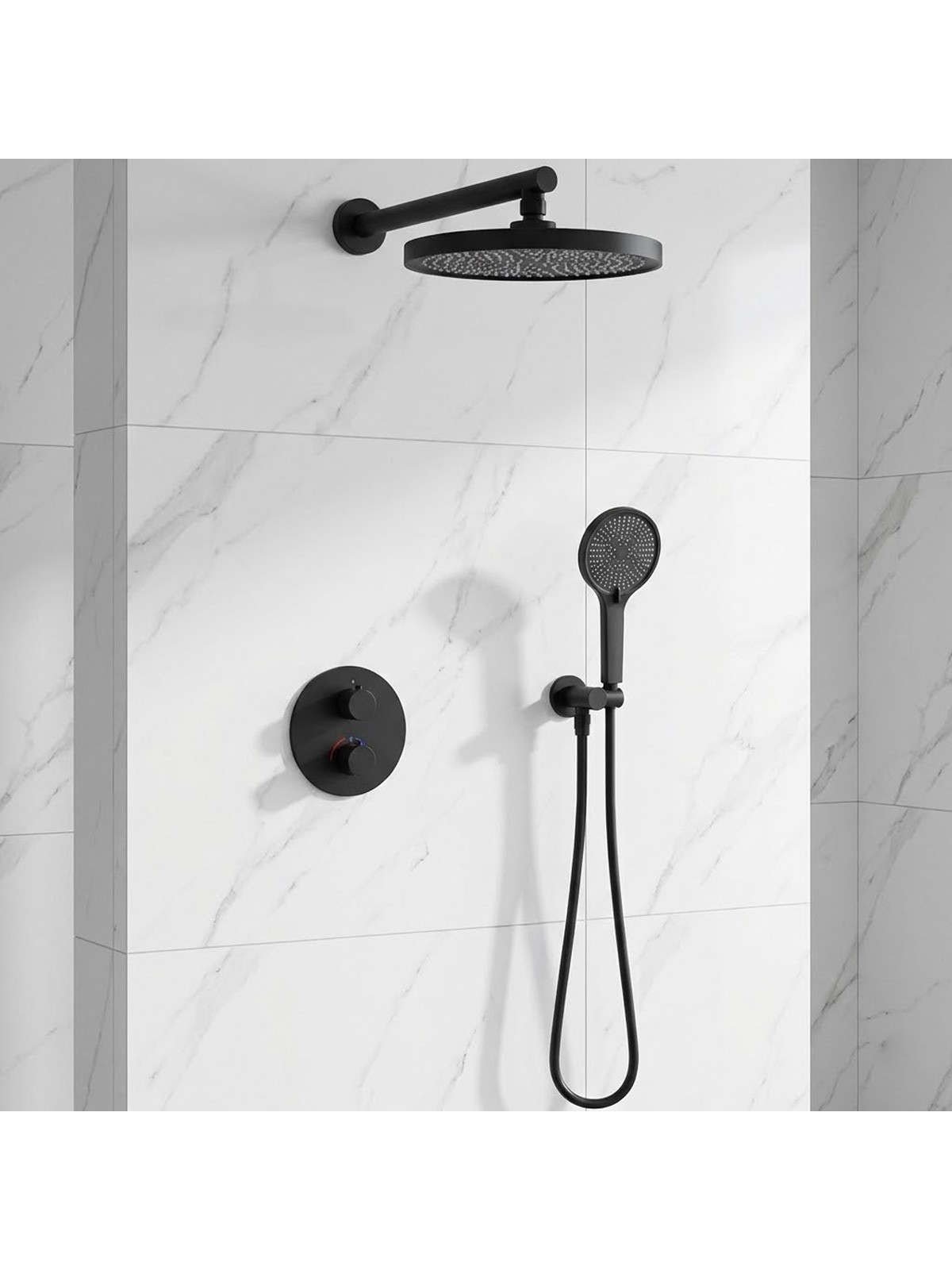 D117125011111MB Flow Душова система прихованого монтажу для душу, на 2 споживачі, з термостатом, чорний матовий (1 сорт)